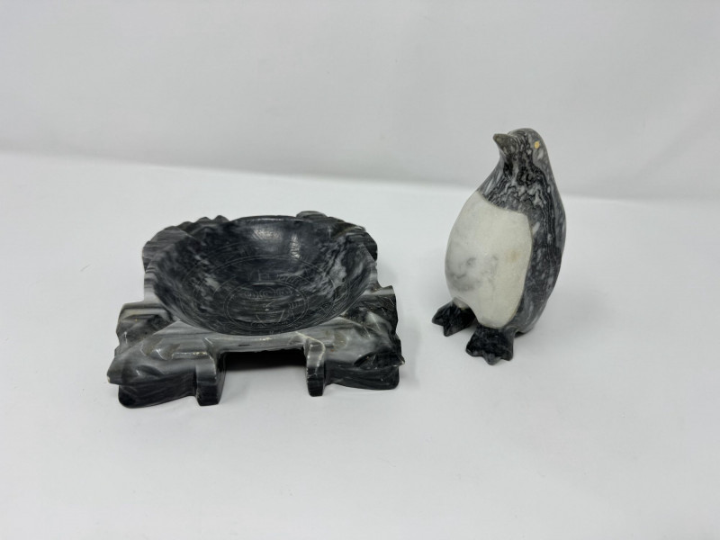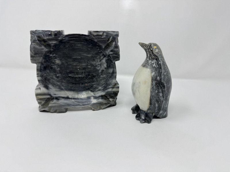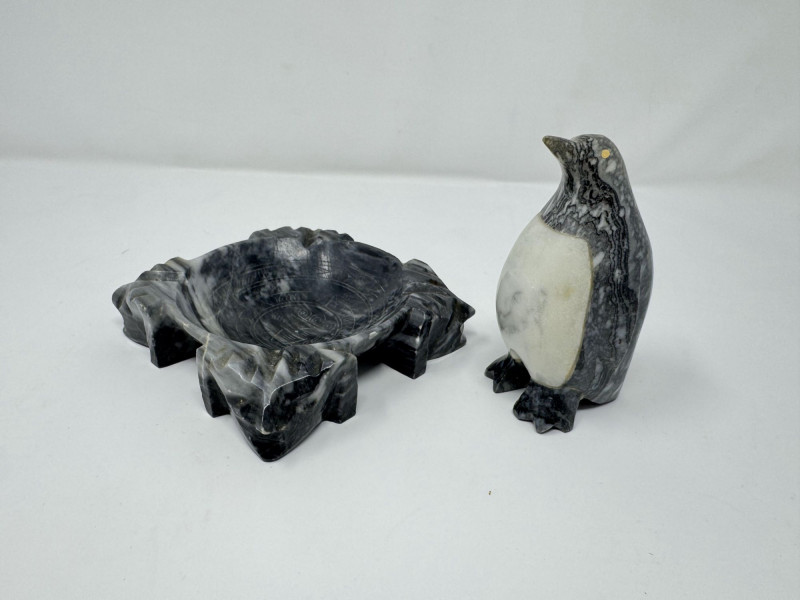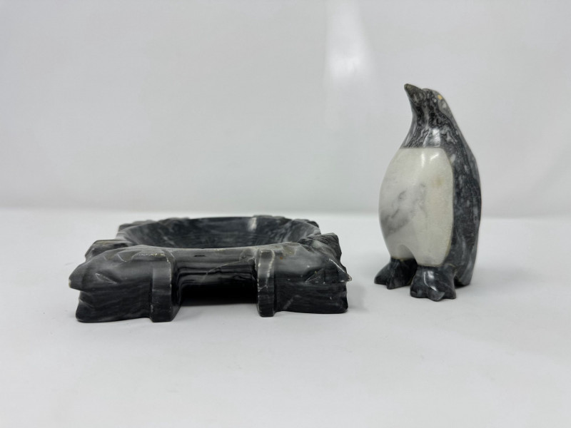 Lot # 77 - Grey Stone Aztec Style Ashtray w/ Matching Penguin Figurine