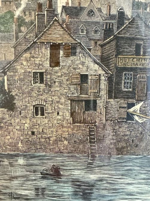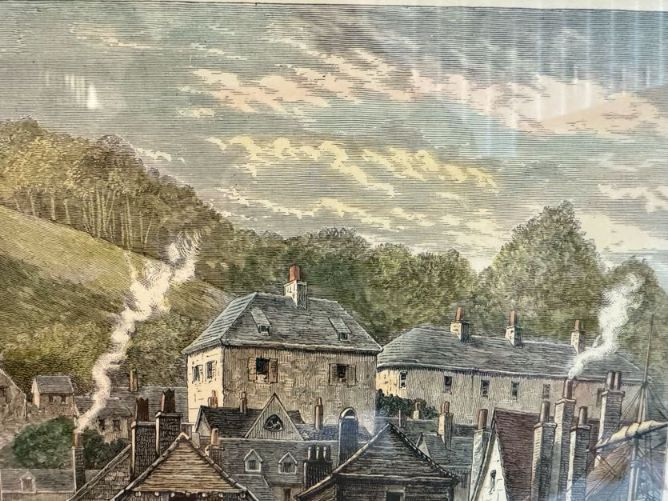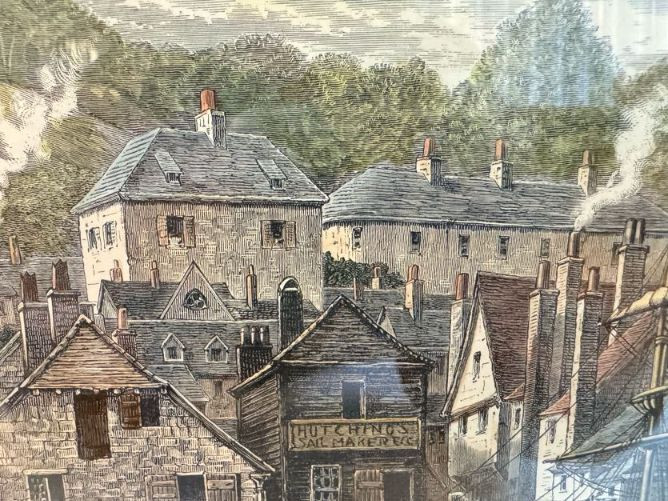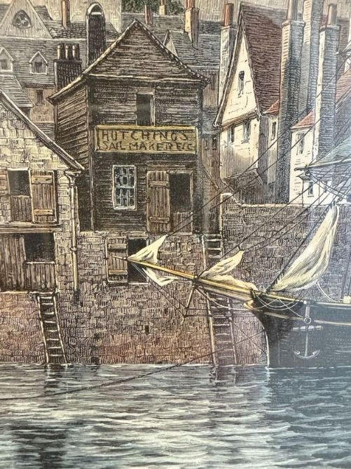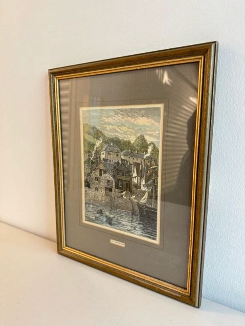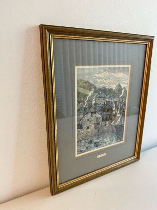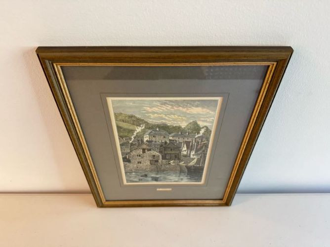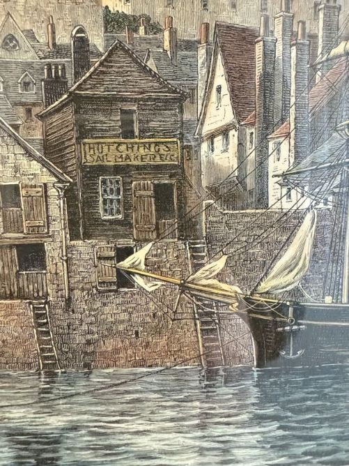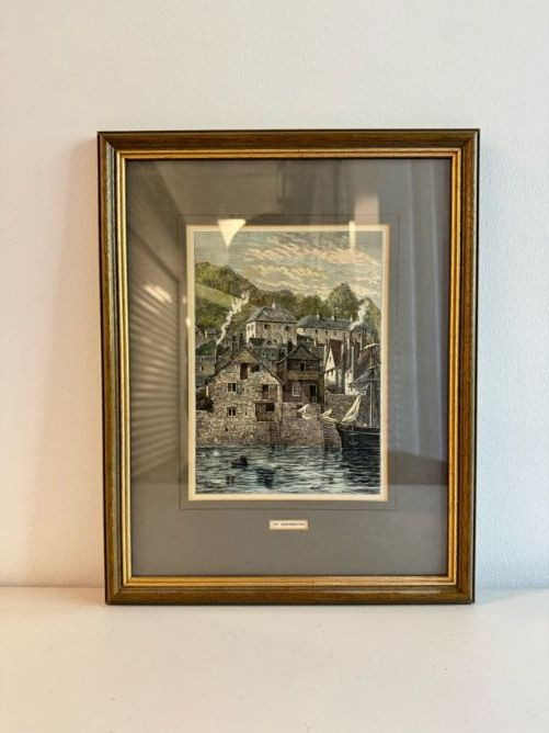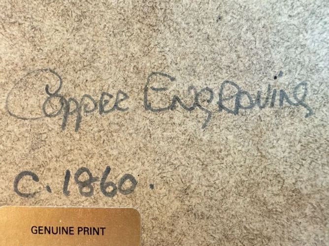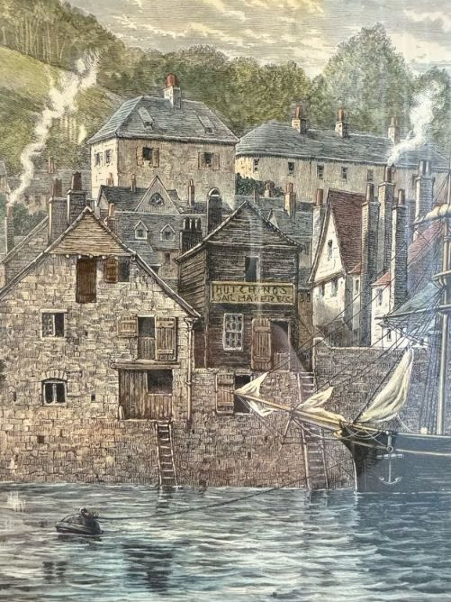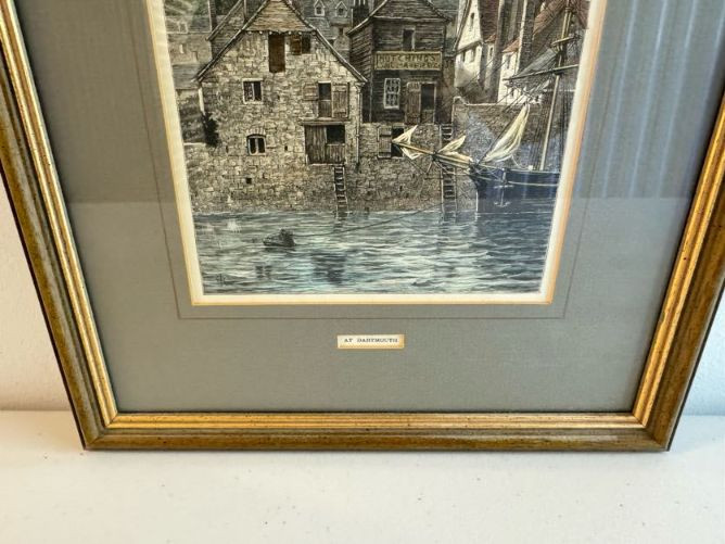 Antique “At Dartmouth” Copper Engraving Print, c. 1860 - Framed.