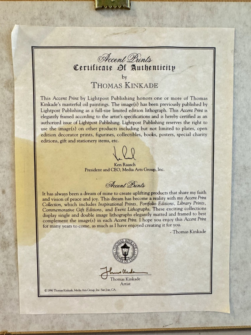 Thomas Kinkade "Hidden Hideaways" Framed Artwork w/ COA.