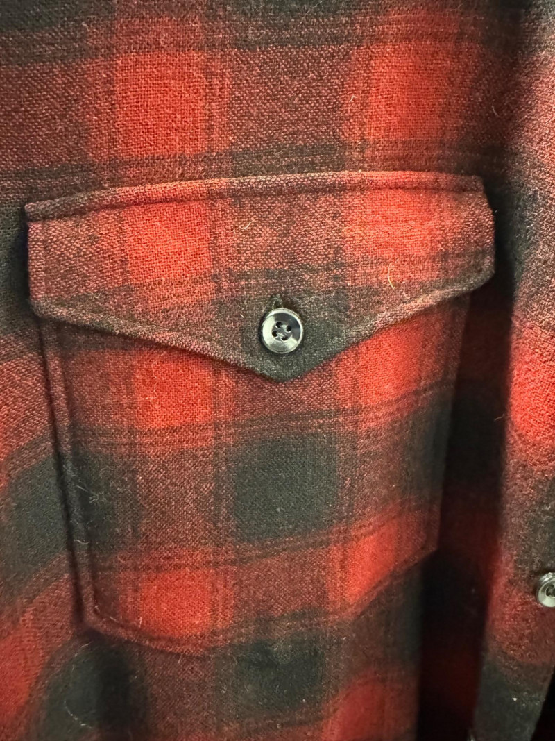 Pendleton Button Up Plaid Wool Shirt - Red/Black Ombre, Large/Men.