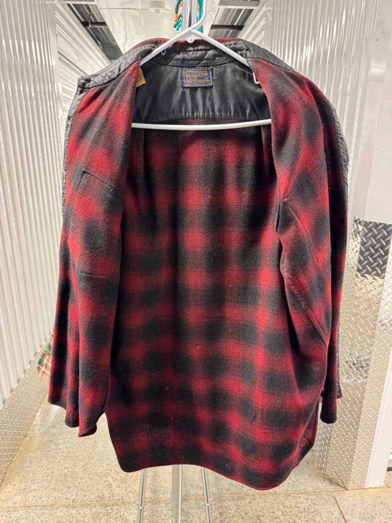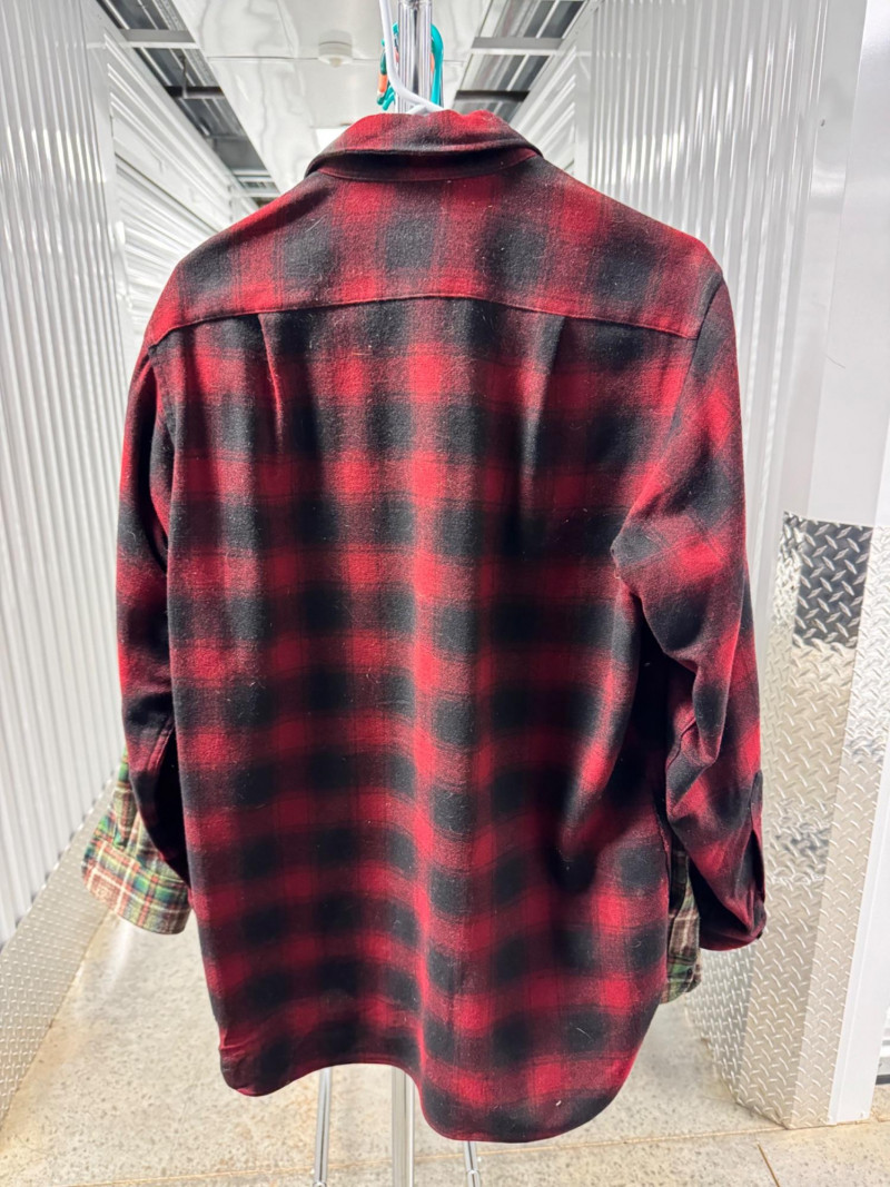 Lot # 92 - Pendleton Button Up Plaid Wool Shirt - Red/Black Ombre, Large/Men