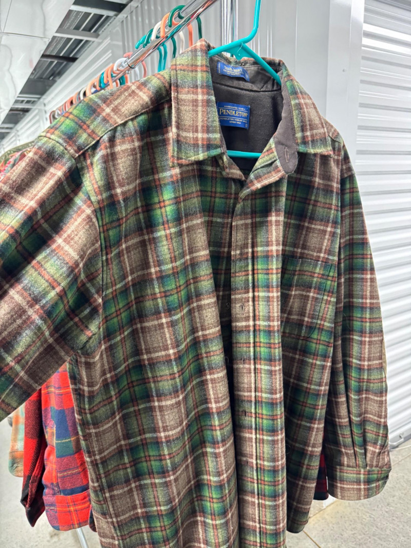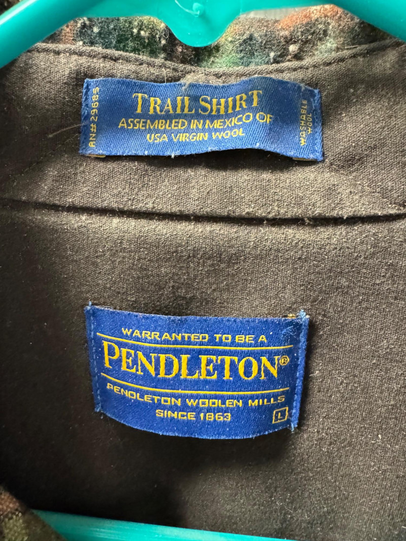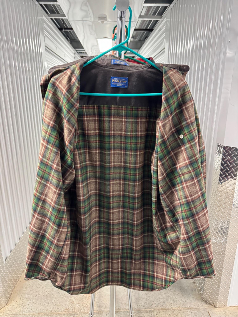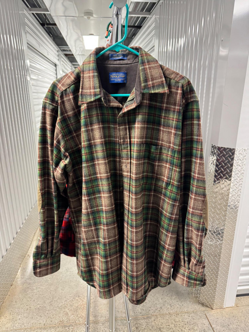 Lot # 93 - Pendleton Green/Brown Plaid Trail Shirt w/ Elbow Patches - Large/Men