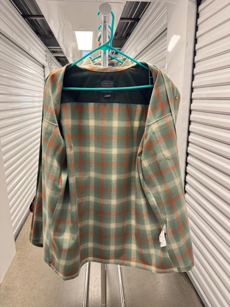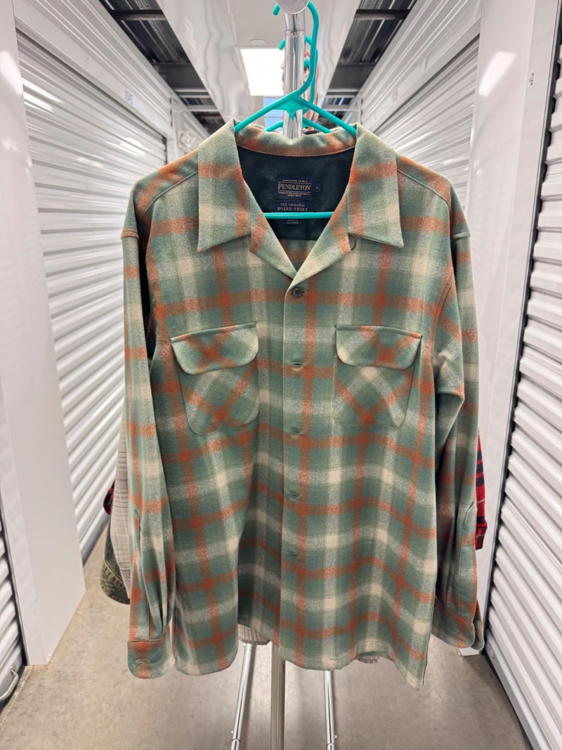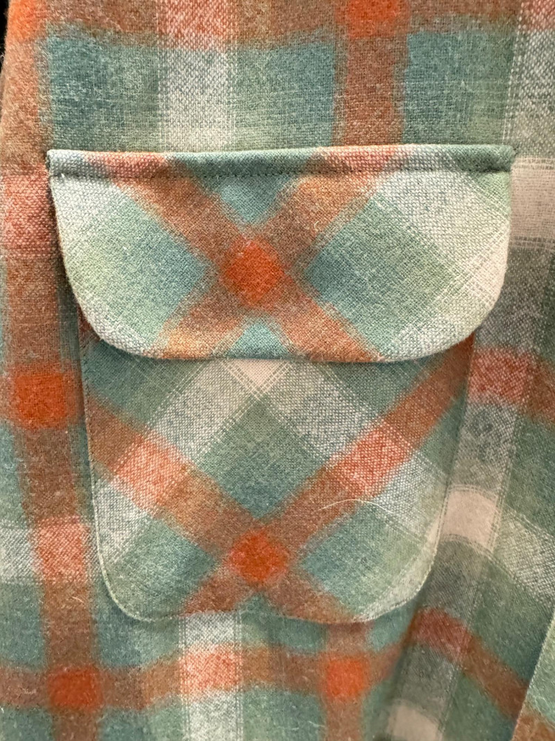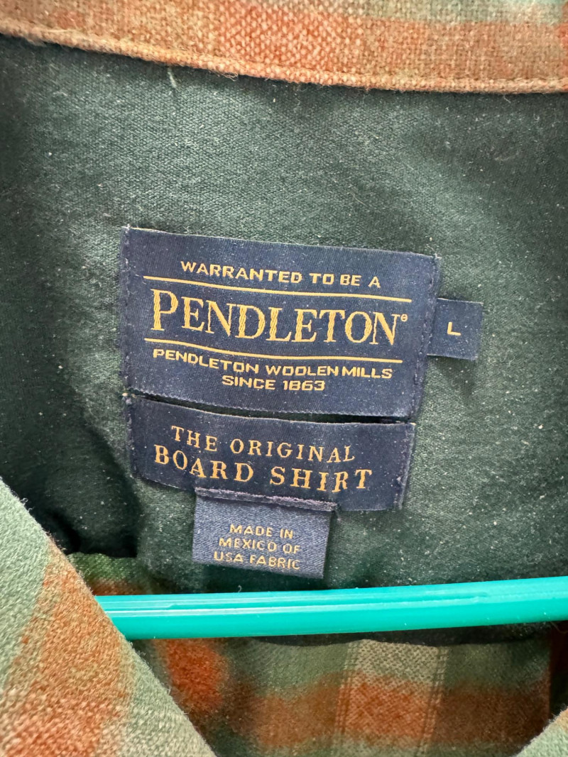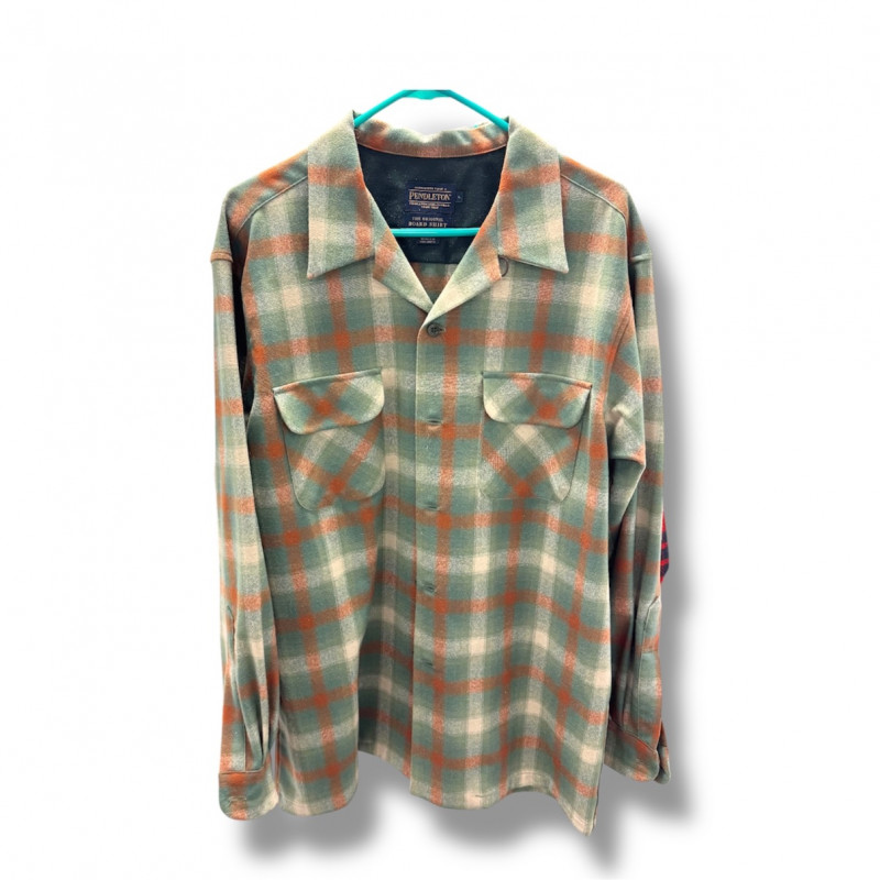 Pendleton Wool Board, Moss/Red Plaid Button Up Shirt - Large/Men.