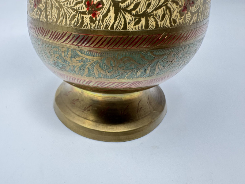 Lot # 123 - Antique Indian Brass Vases w/ Taj Mahal & Map Engraved Design