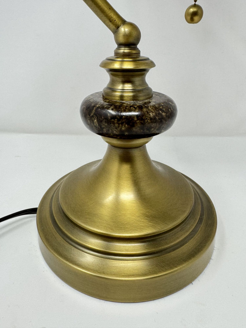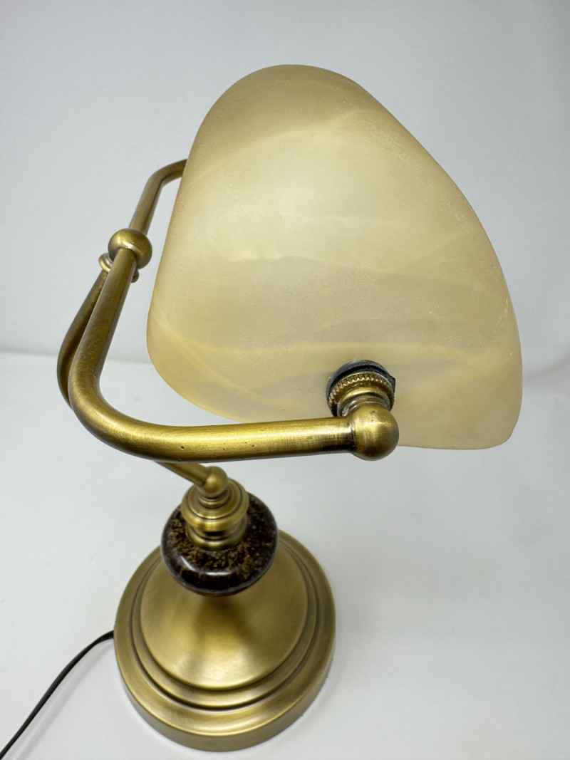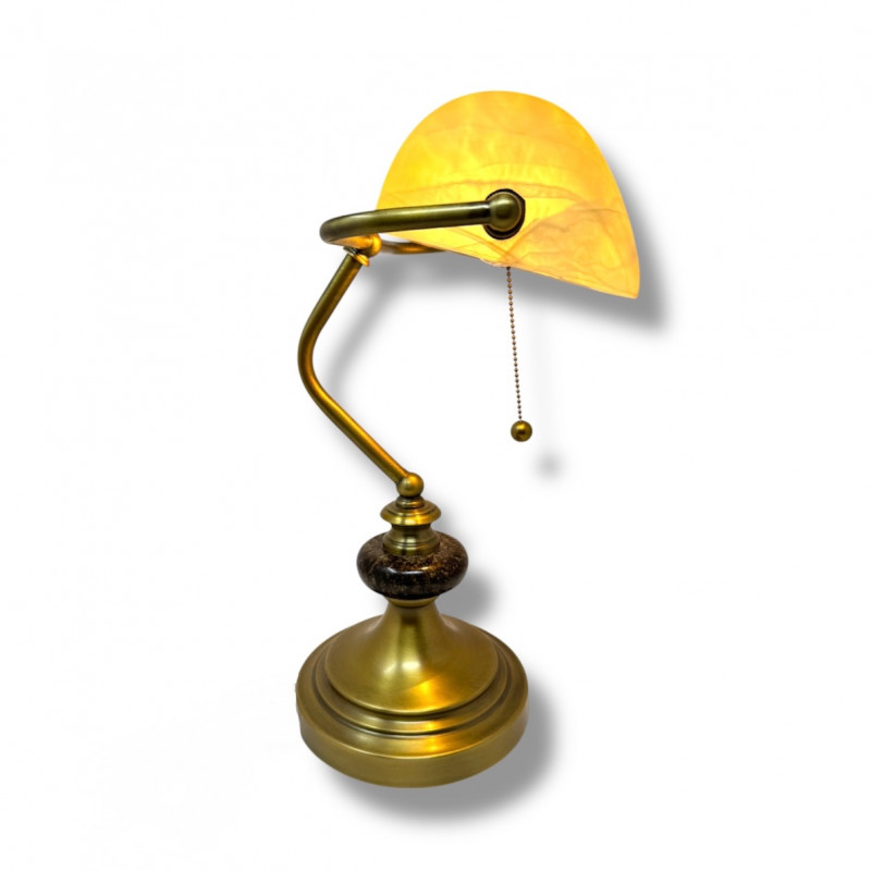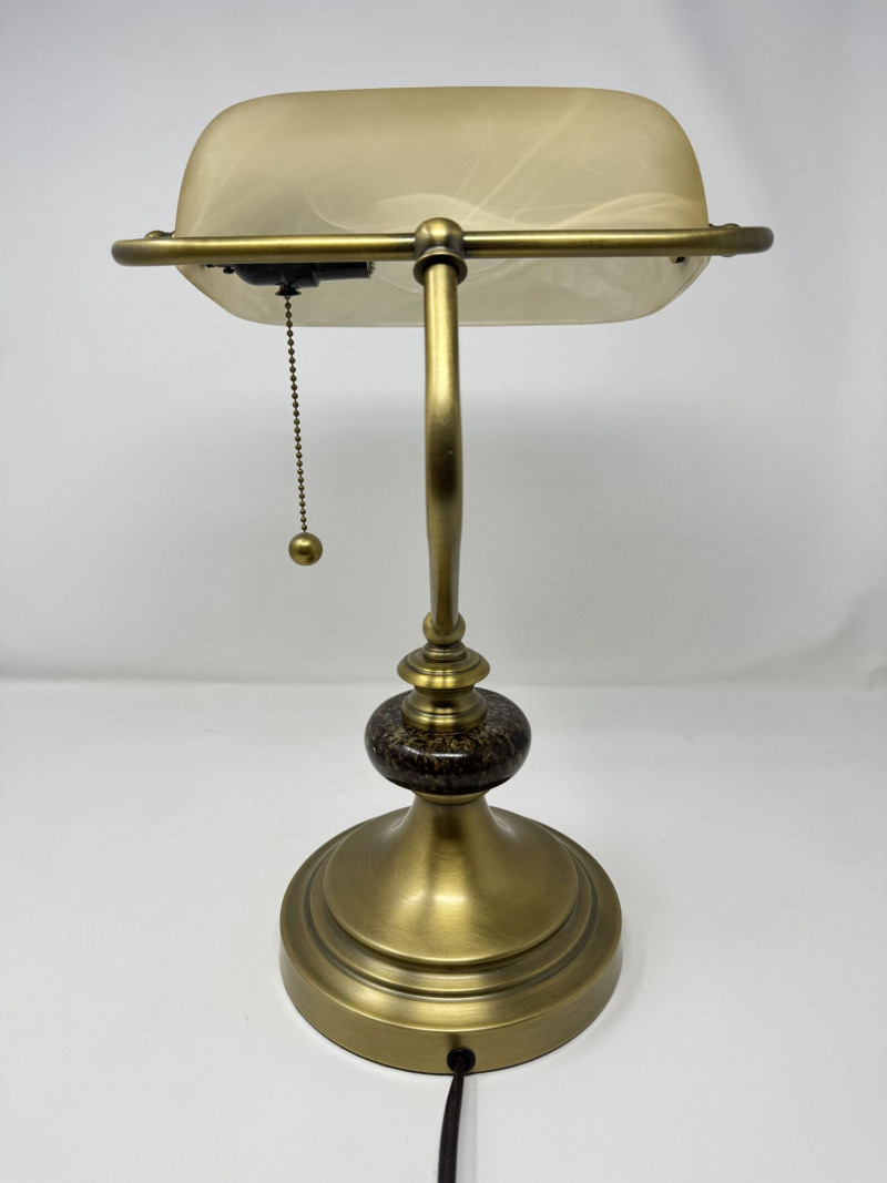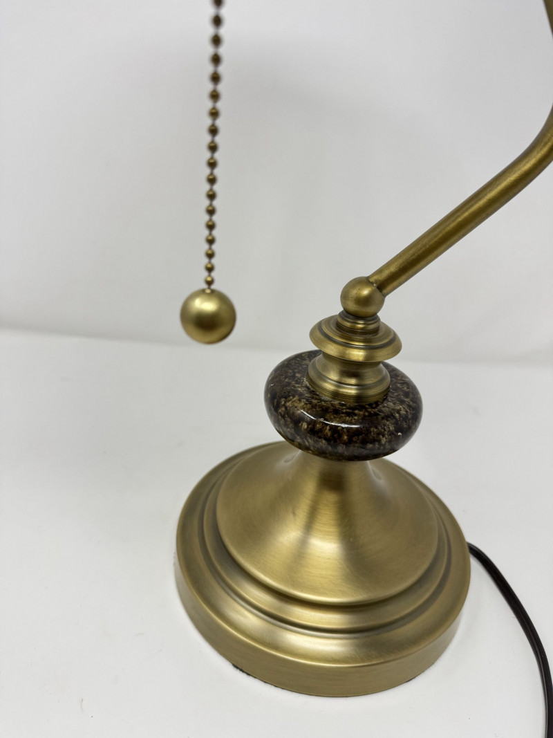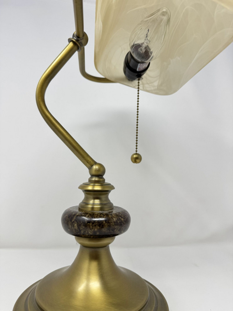 Lot # 138 - Brass Desk Lamp w/ Alabaster Style Shade & Pull Chain
