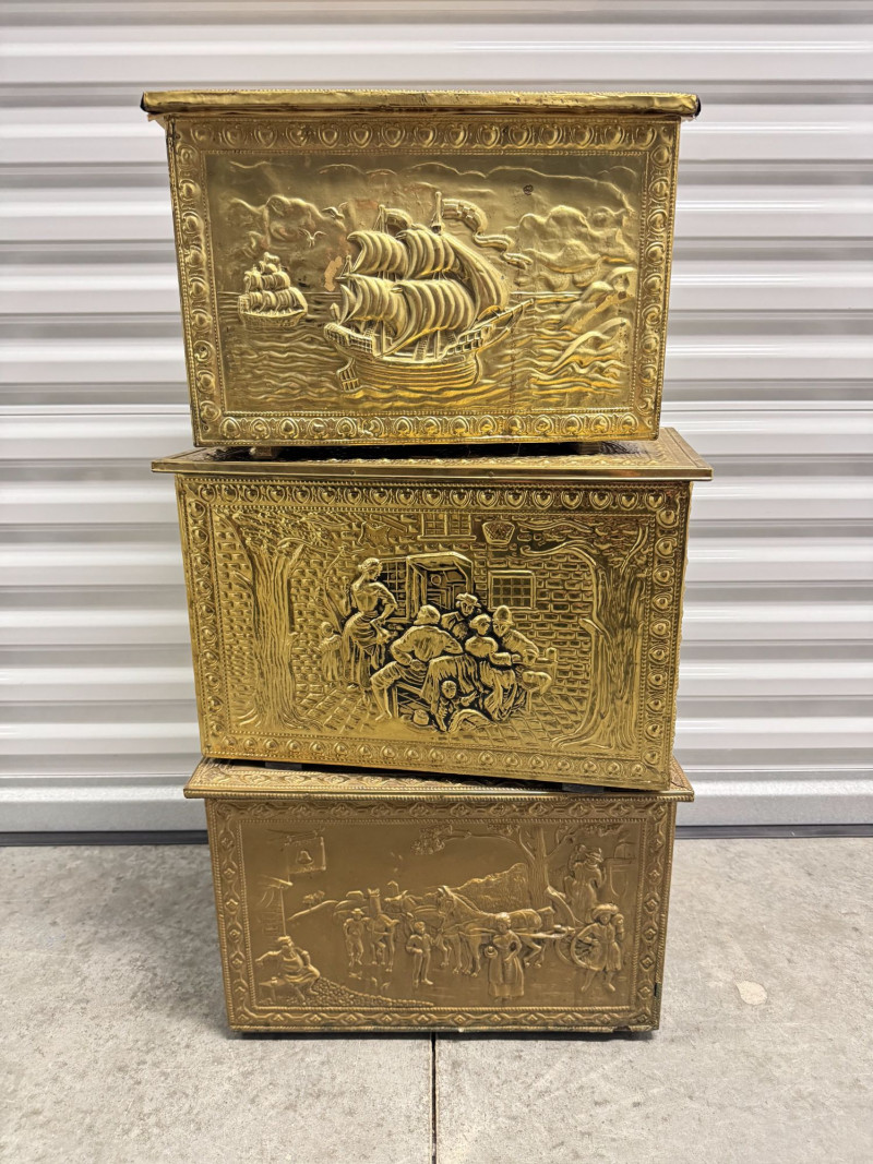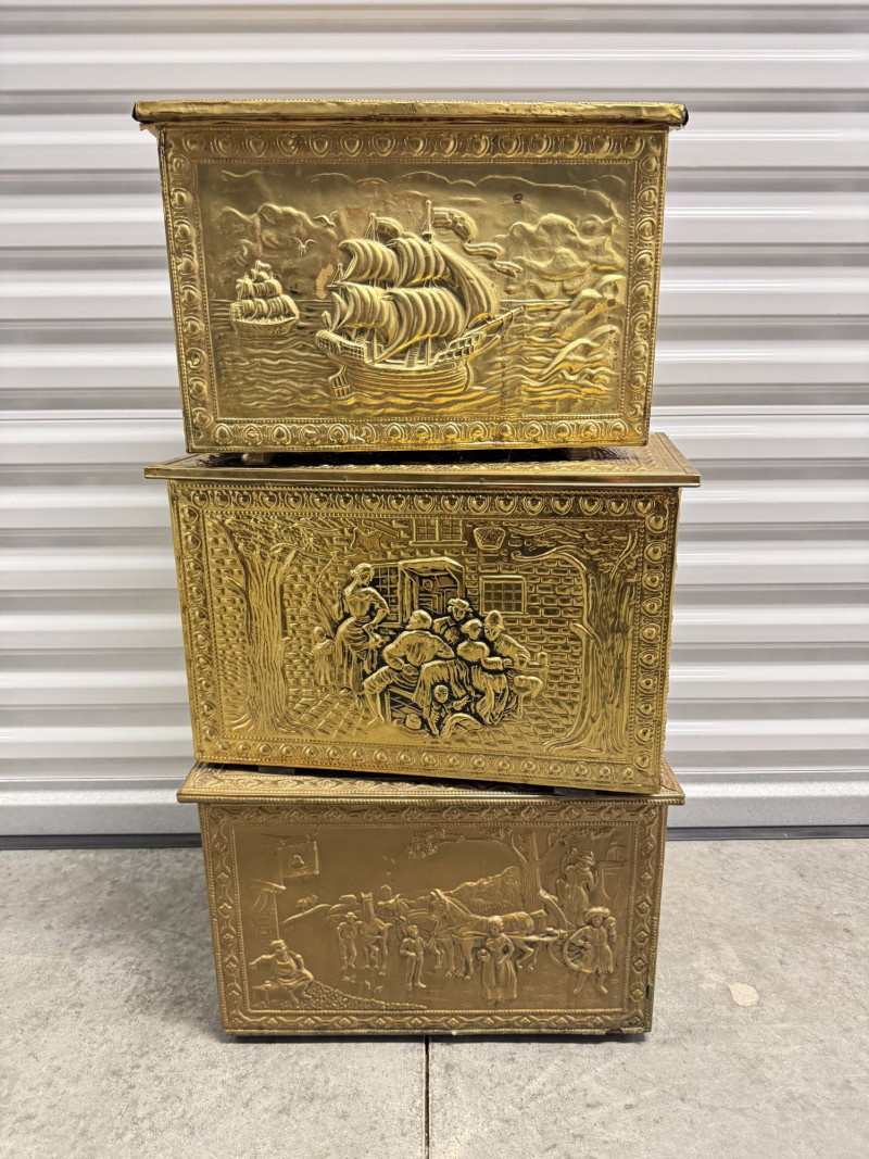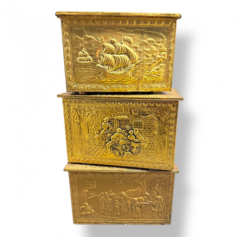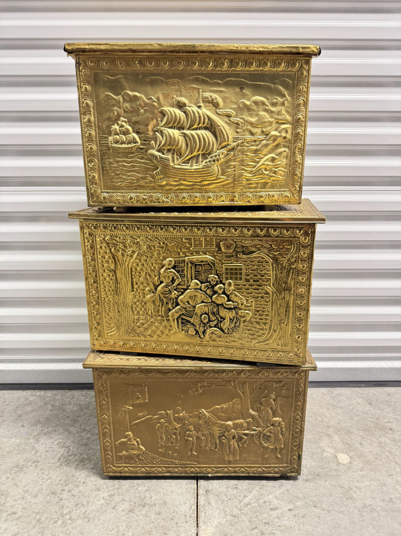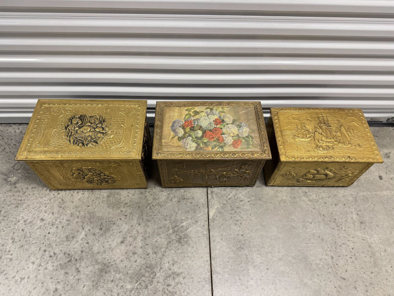 Vintage Embossed Metal Coal Boxes - Set of 3 Storage Trunks.