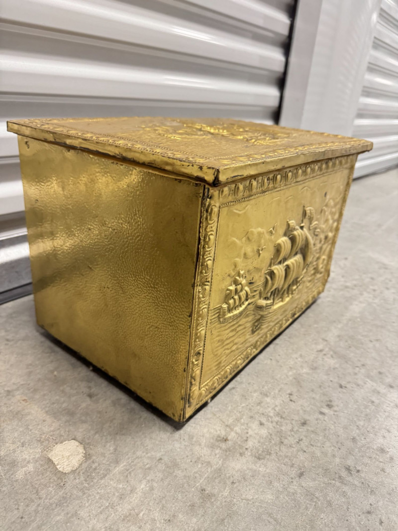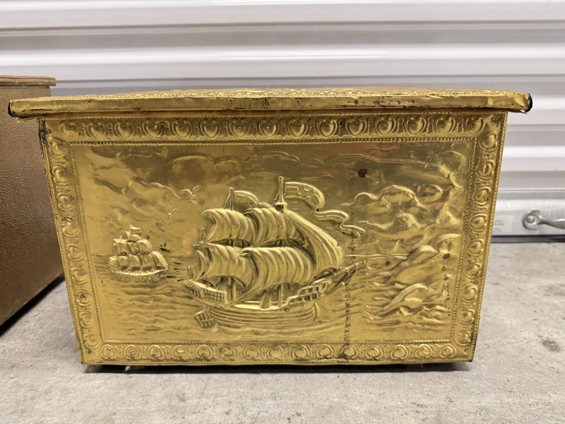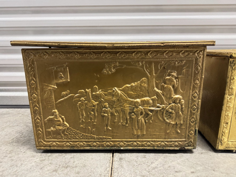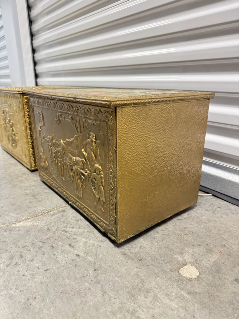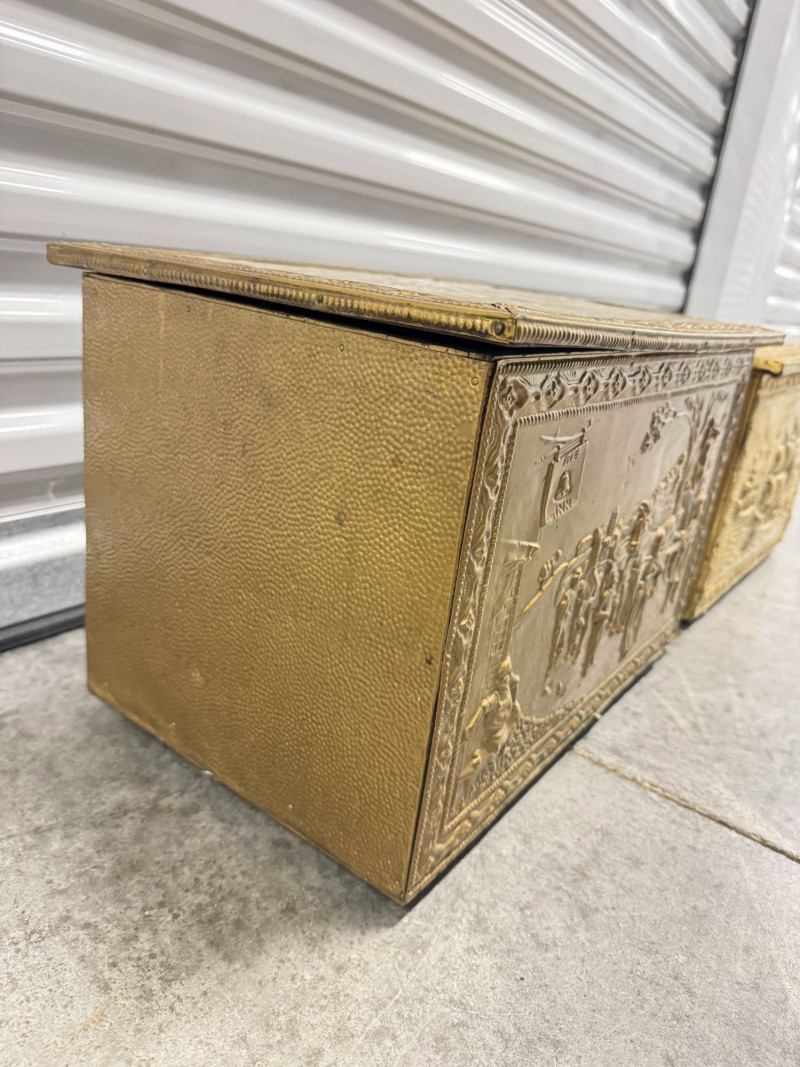 Vintage Embossed Metal Coal Boxes - Set of 3 Storage Trunks.