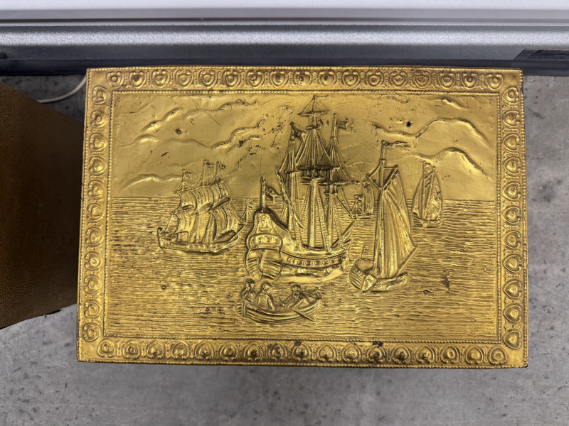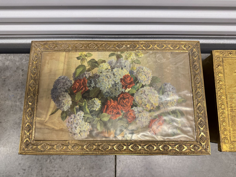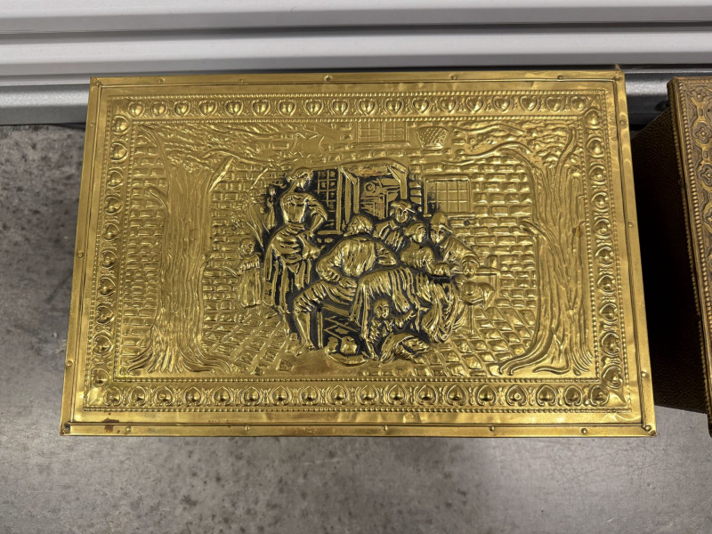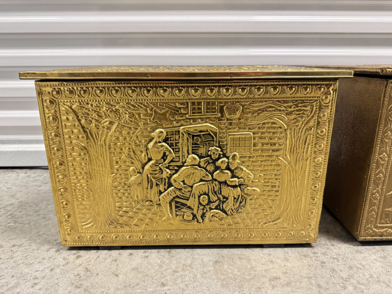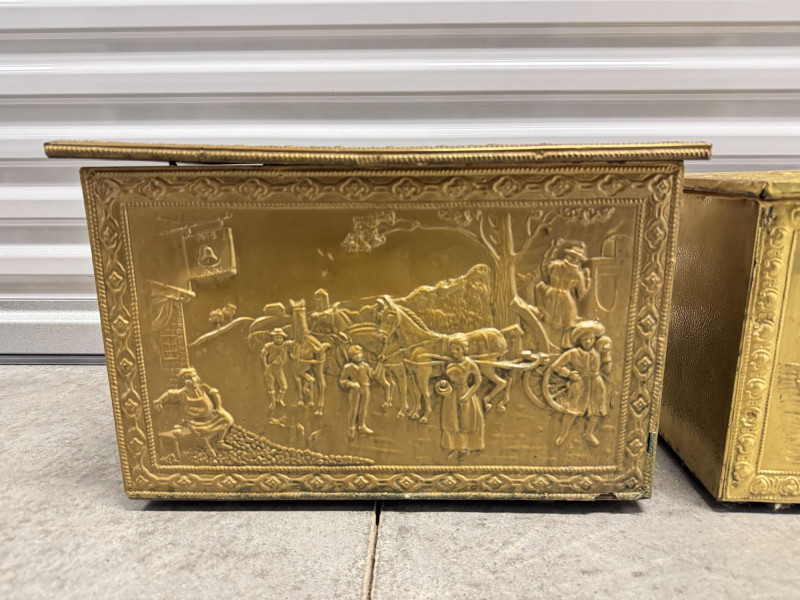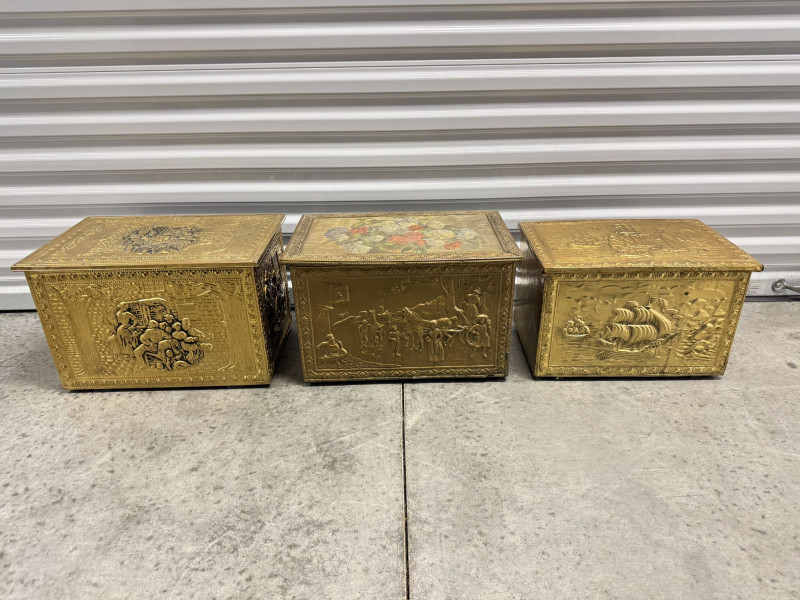 Lot # 140 - Vintage Embossed Metal Coal Boxes - Set of 3 Storage Trunks