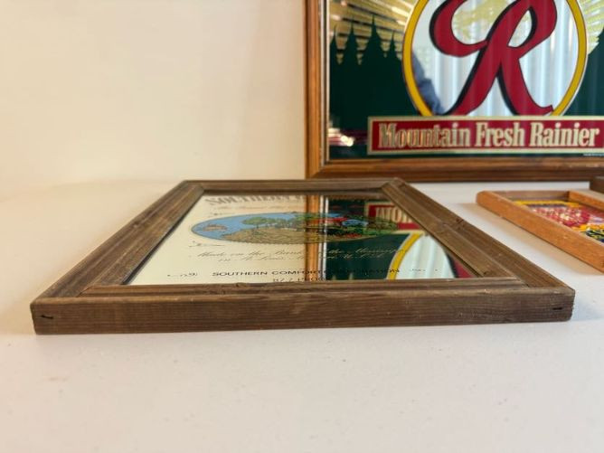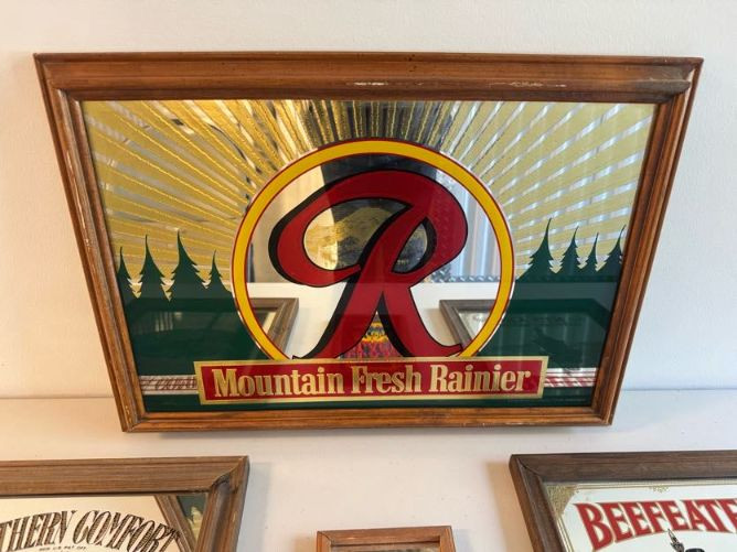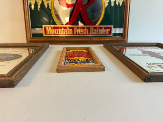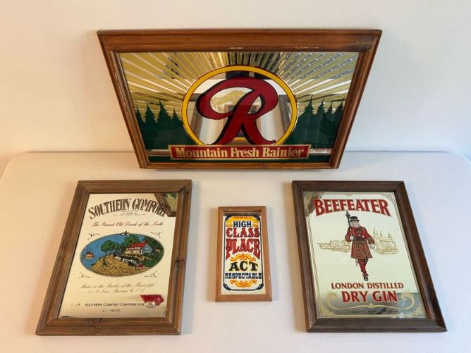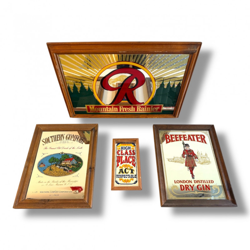 Vintage Beer & Liquor Advertising Mirrors - Rainier Beer, Beefeater +