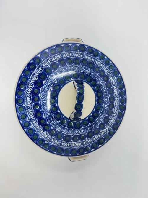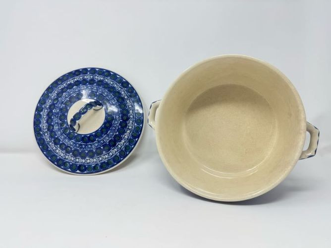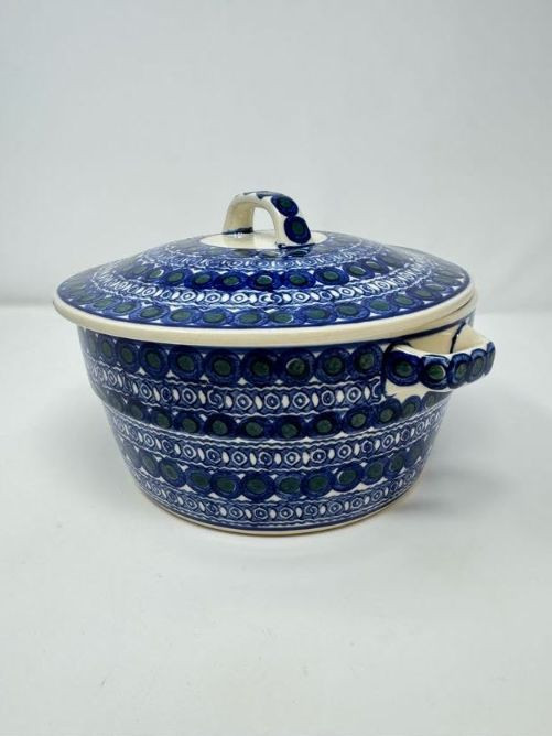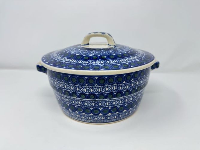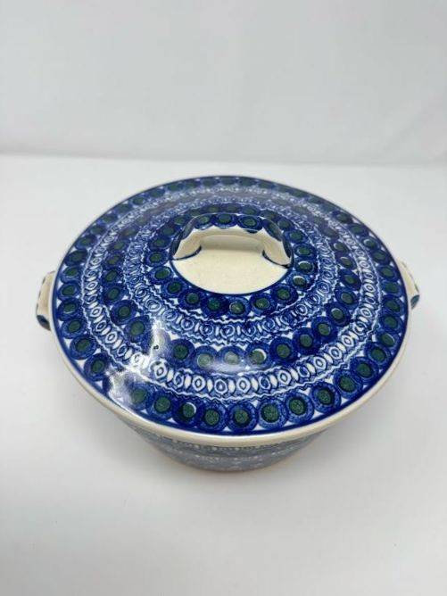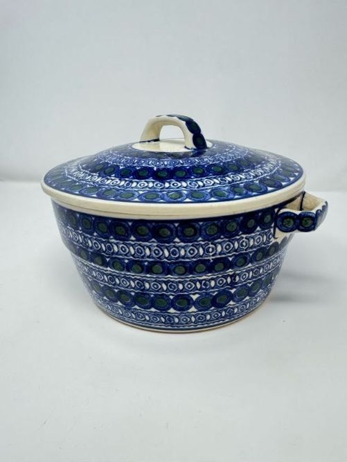 Polish Pottery Lidded Casserole - Blue Pattern Boleslawiec Style.