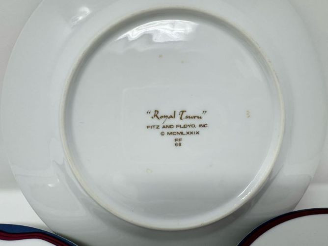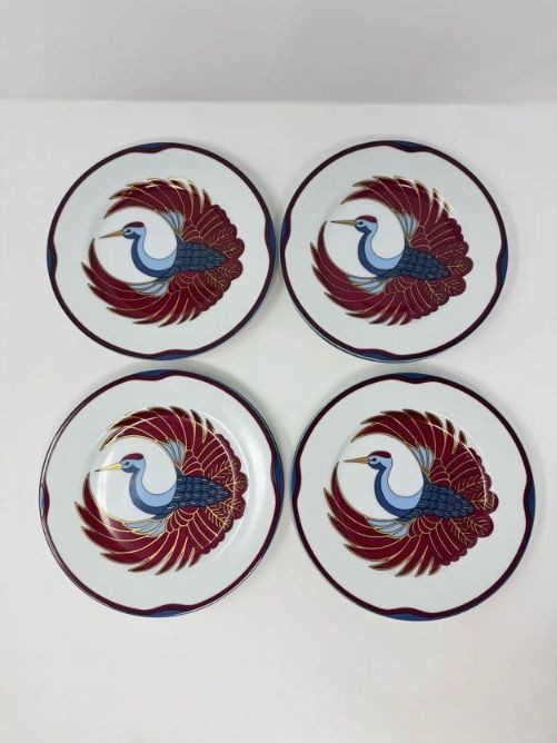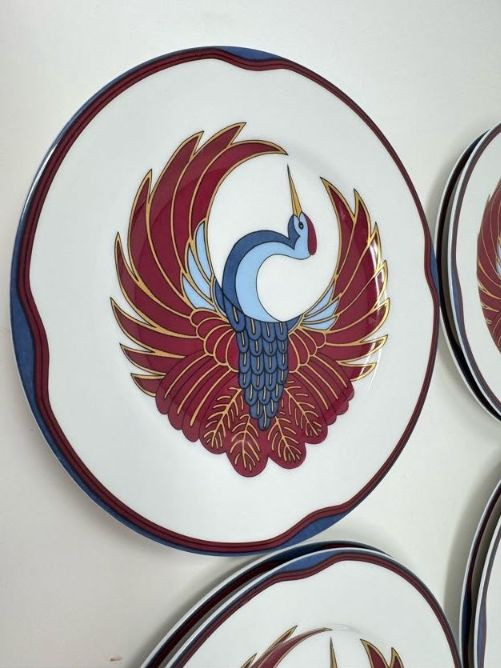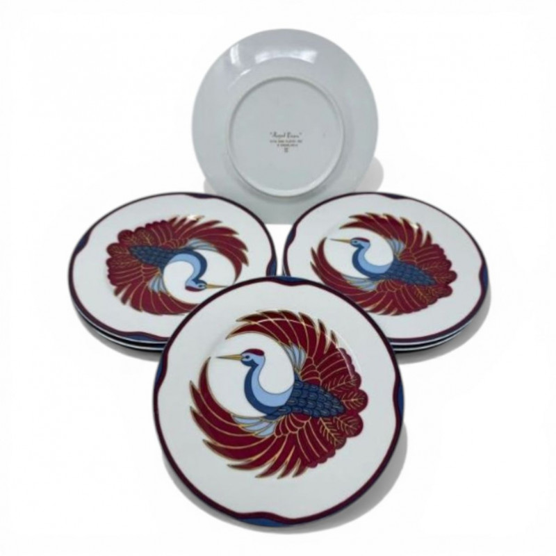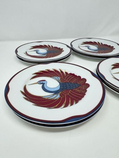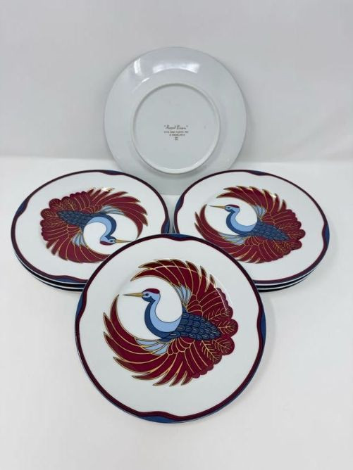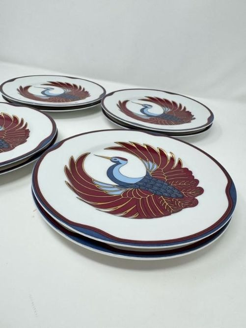 Set of 8 Fitz & Floyd Royal Tsuru Plates - Crane Design, 1979.