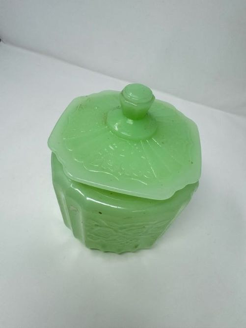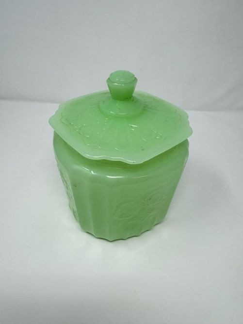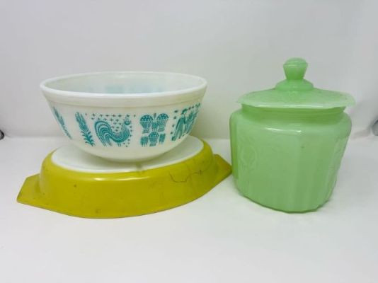 Lot # 173 - Vintage Pyrex Butterprint Bowl, Lime Pyrex Dish & Jadeite Jar