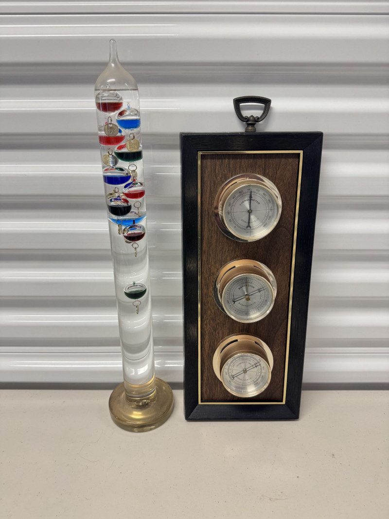 Vintage Springfield Weather Station Barometer + Galileo Thermometer.