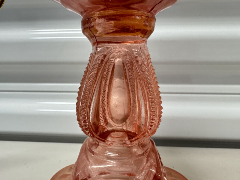 Vintage Pink Glass Hurricane Style Lamp w/ Chimney.