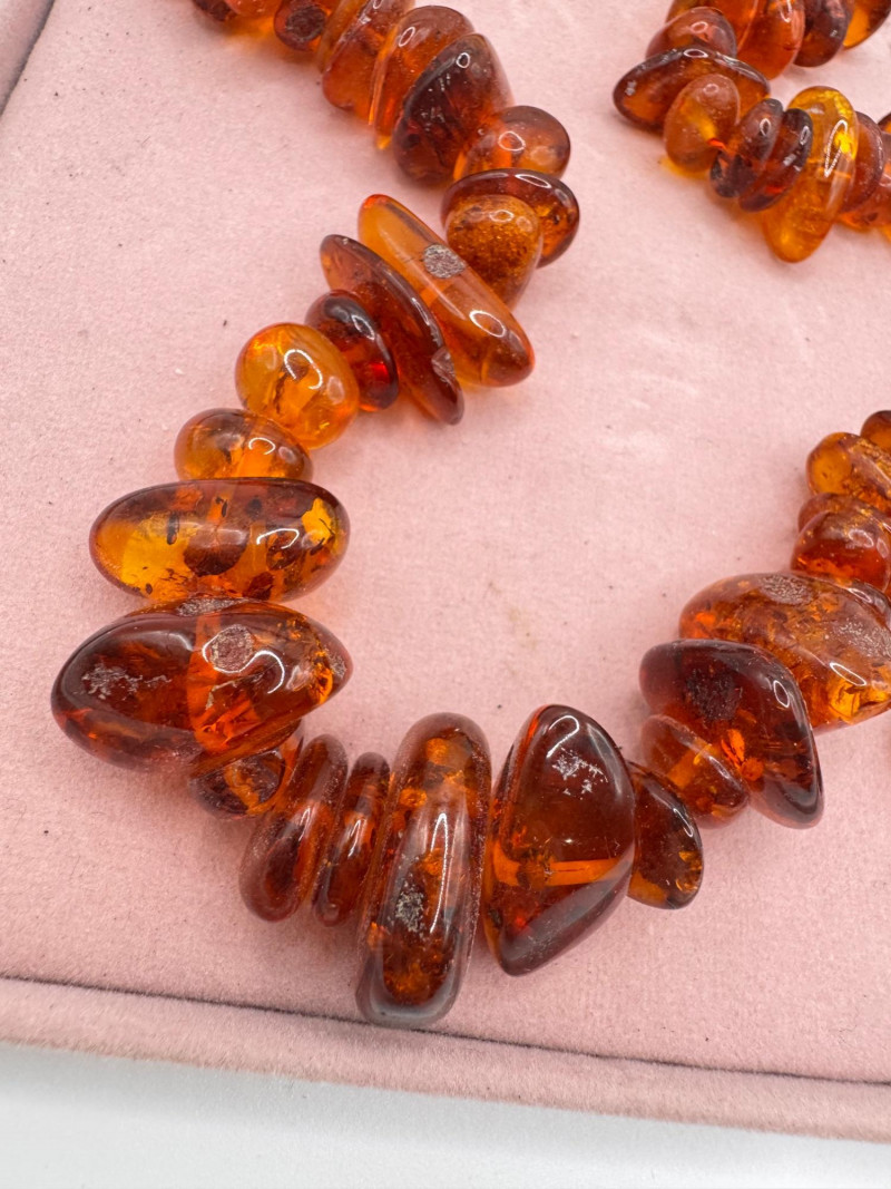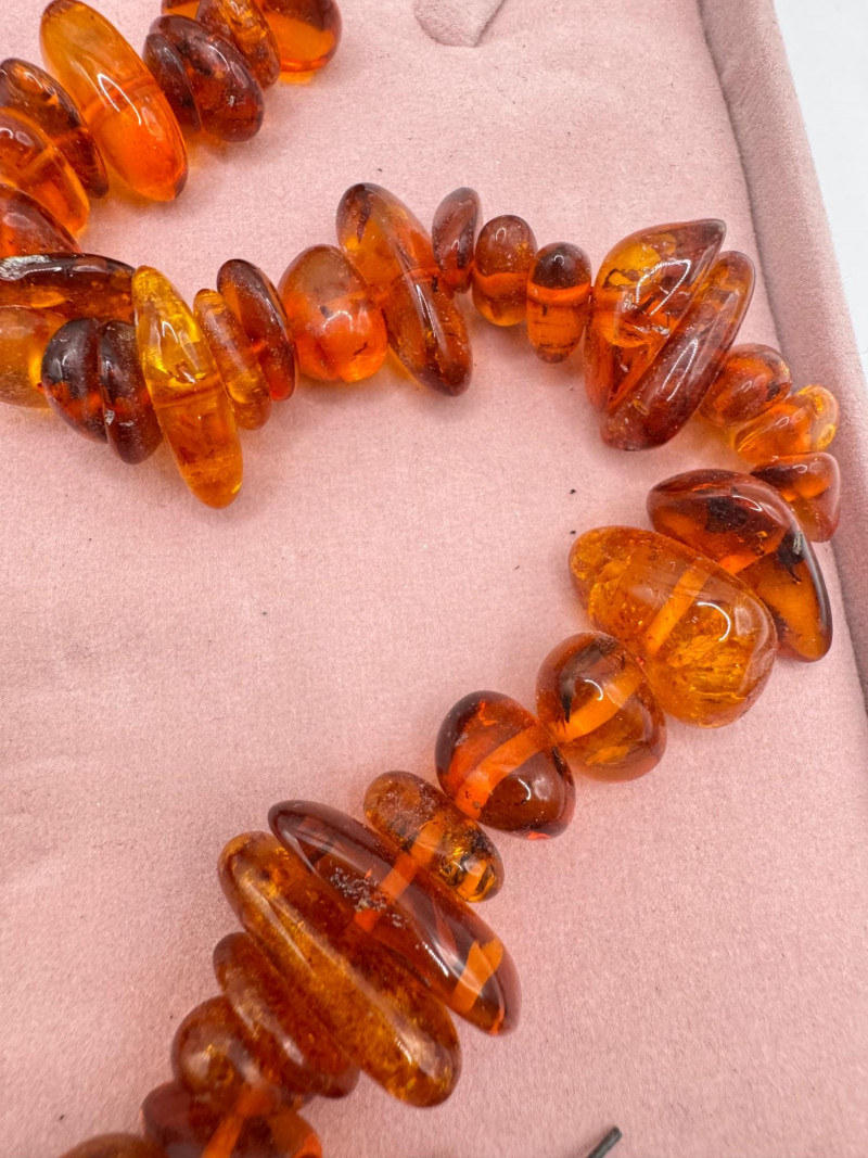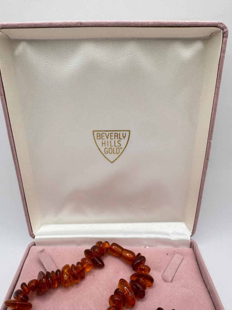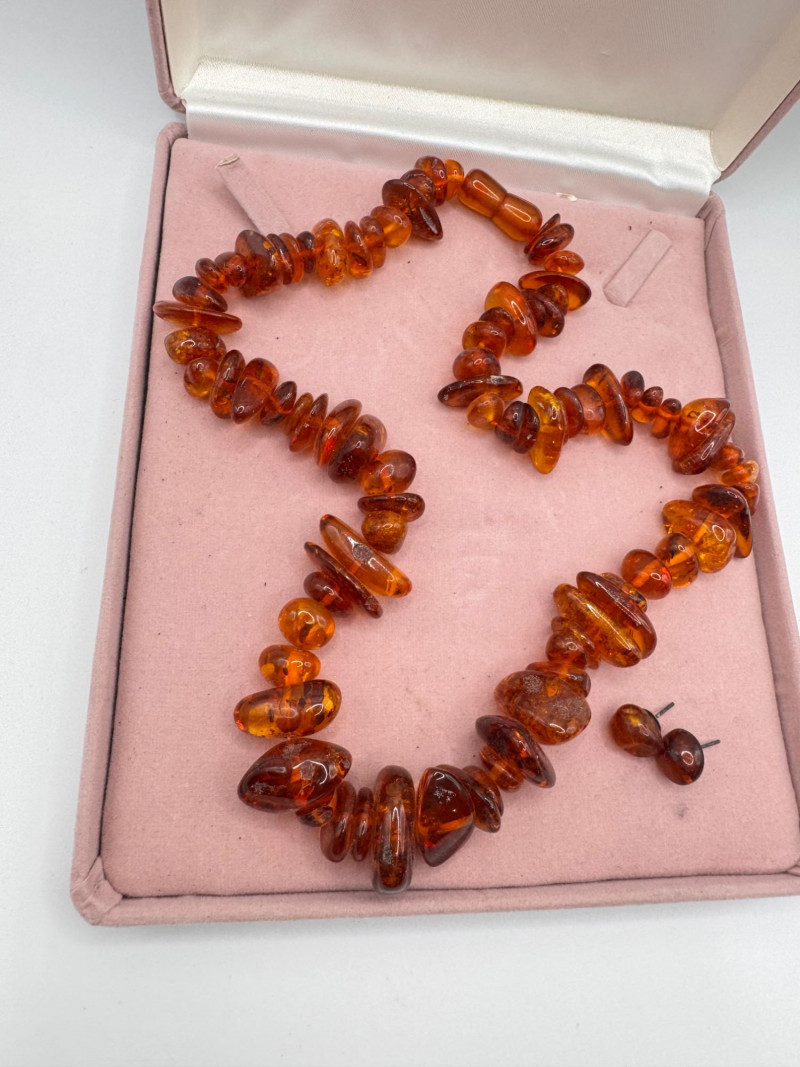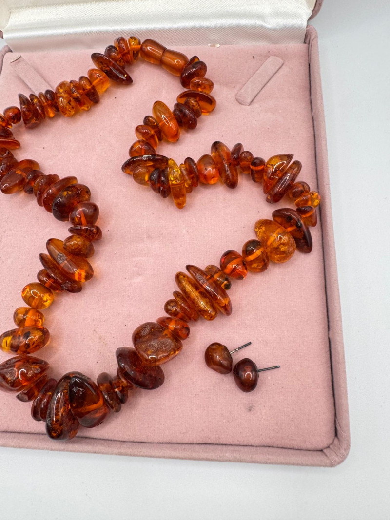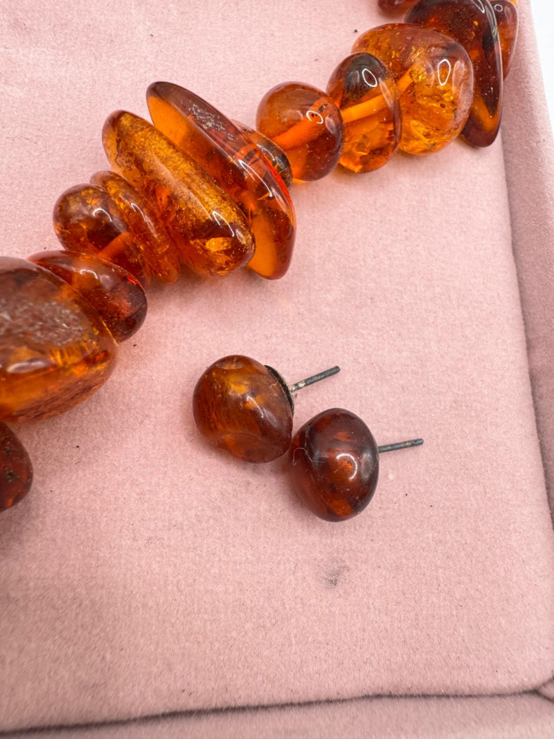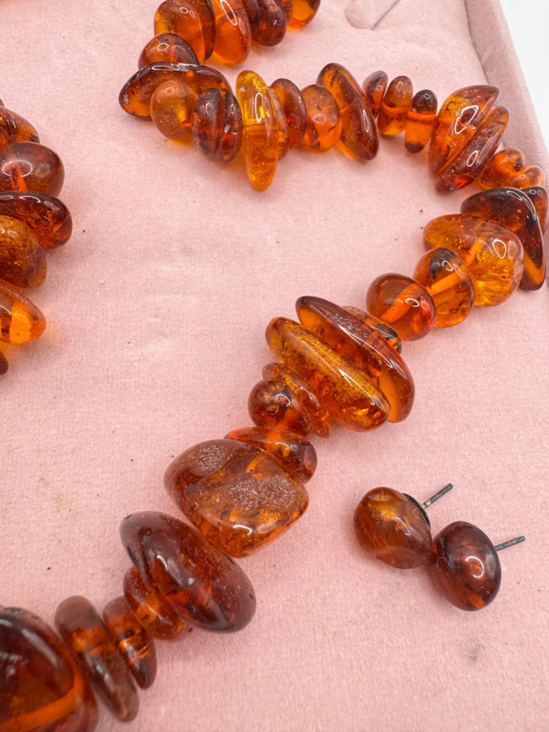 Graduated Honey Amber Bead Necklace w/ Matching Earrings.