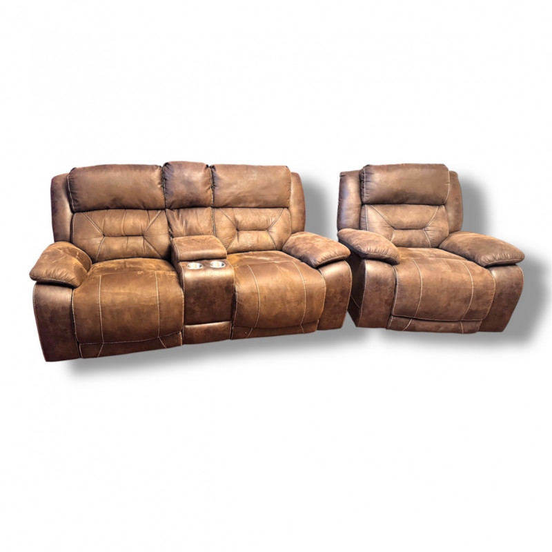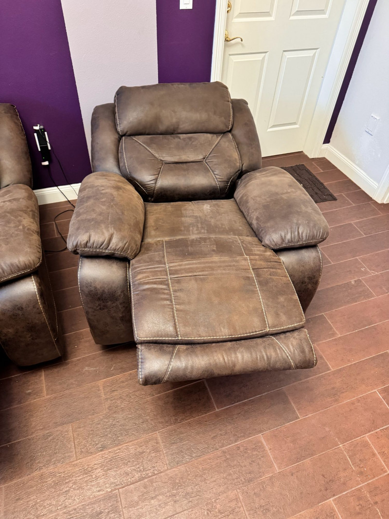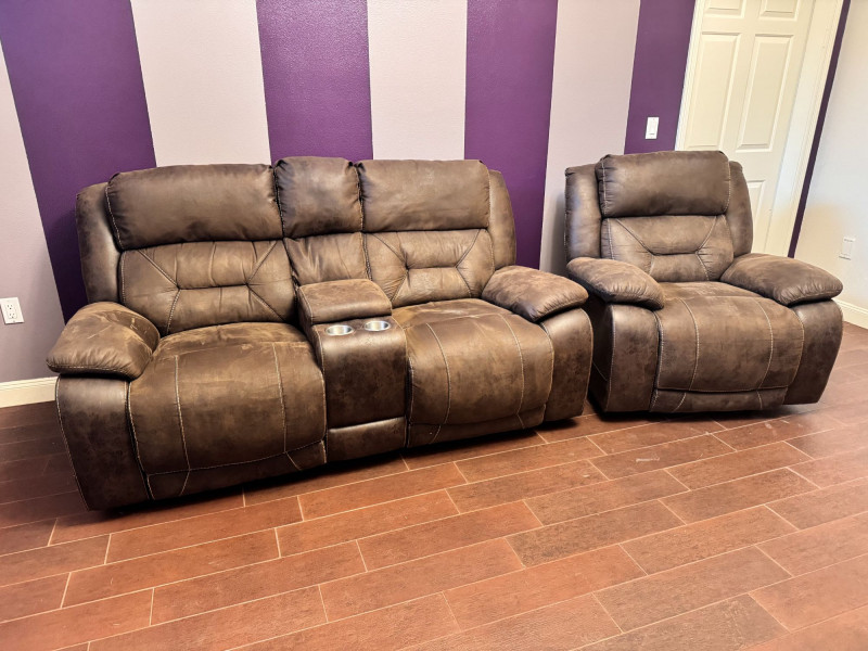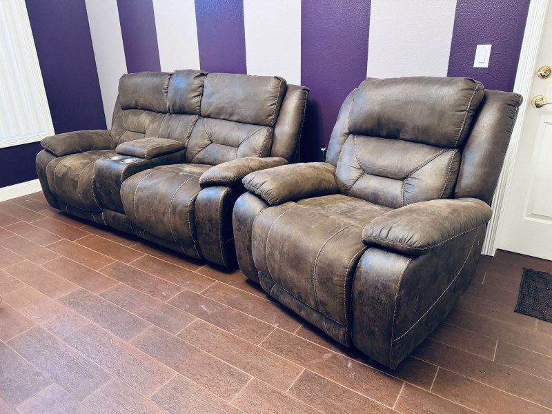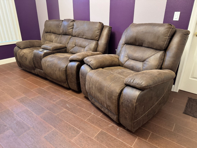 Both loveseat and recliner fully recline