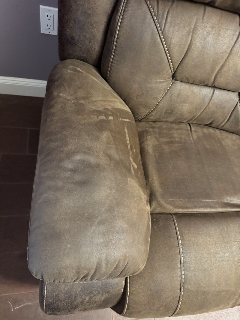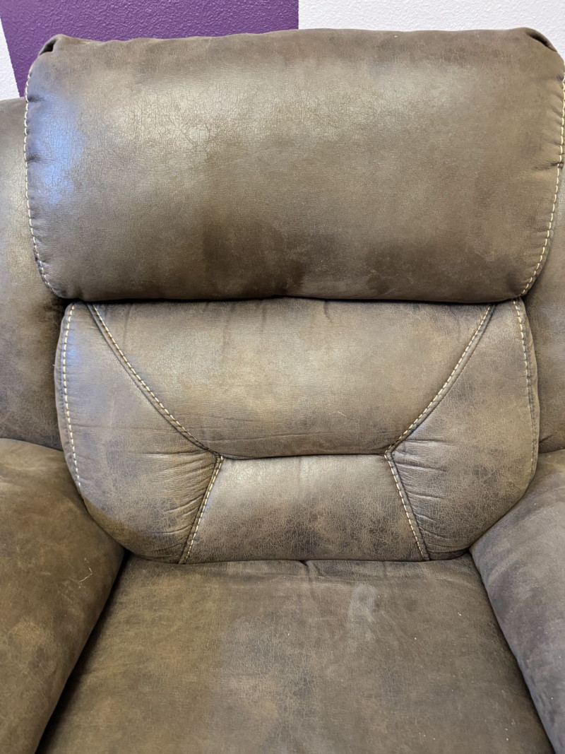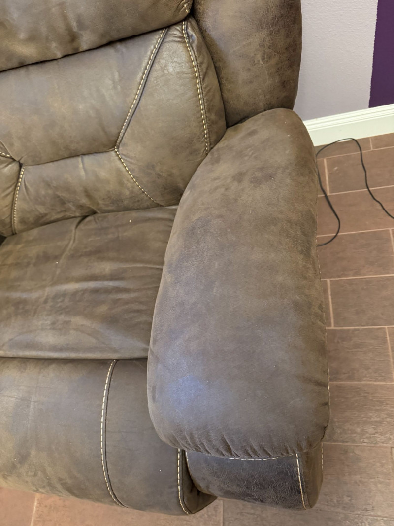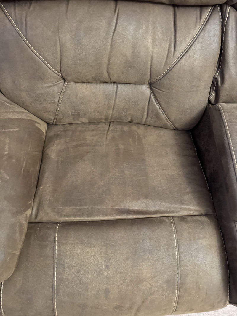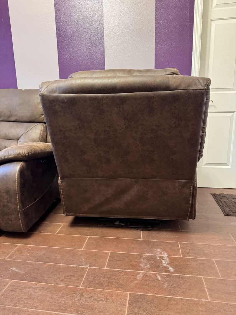 Brown Leather Power Reclining Loveseat w/ USB Cupholders + Recliner. Loveseat Dimensions Recliner Dimensions (Single Seat) Condition Shows wear, discoloration, and surface marks on seats and arms Bidding on this lot is an agreement that: (1.) You will have at least 2 capable, able bodied persons to lift and load at a minimum. (2.) You will bring a hand truck and/or any other tools needed to remove this item. If these steps are not followed your item will be forfeit and no refund given.