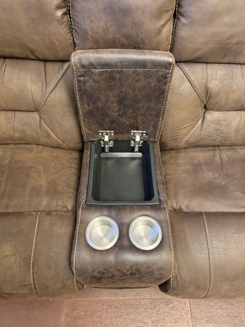 Lot # 1 - Brown Leather Power Reclining Loveseat w/ USB Cupholders + Recliner