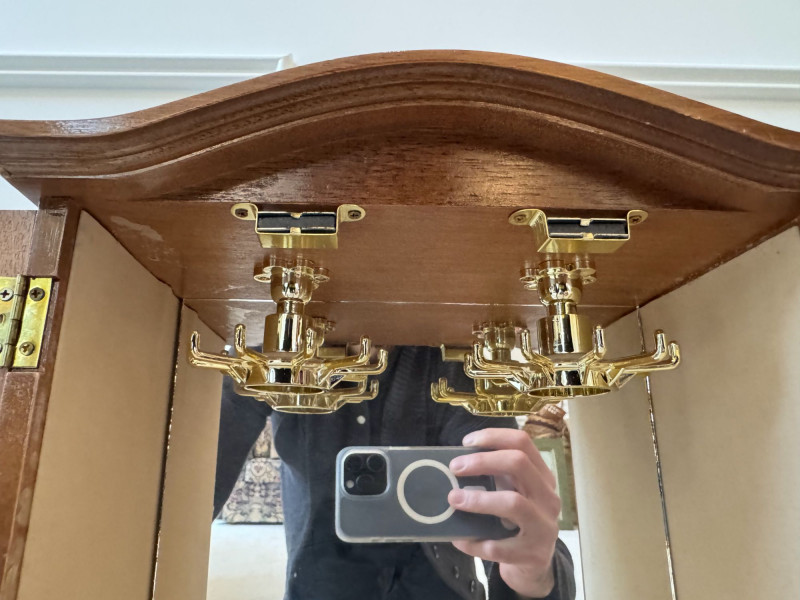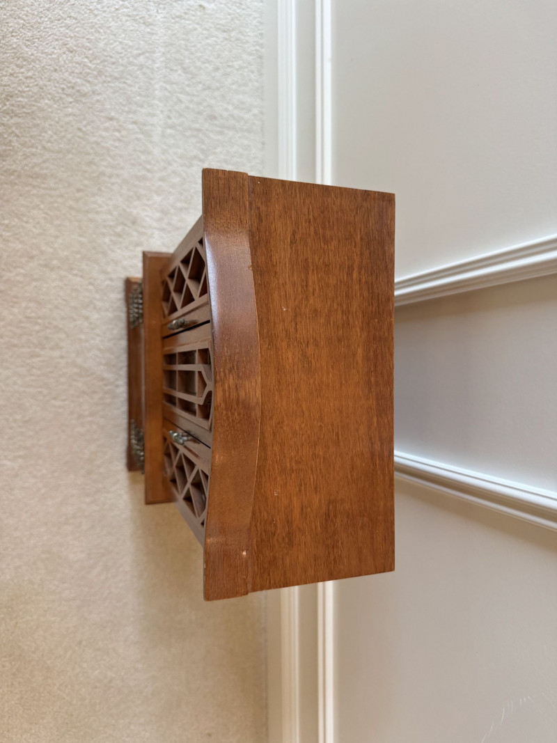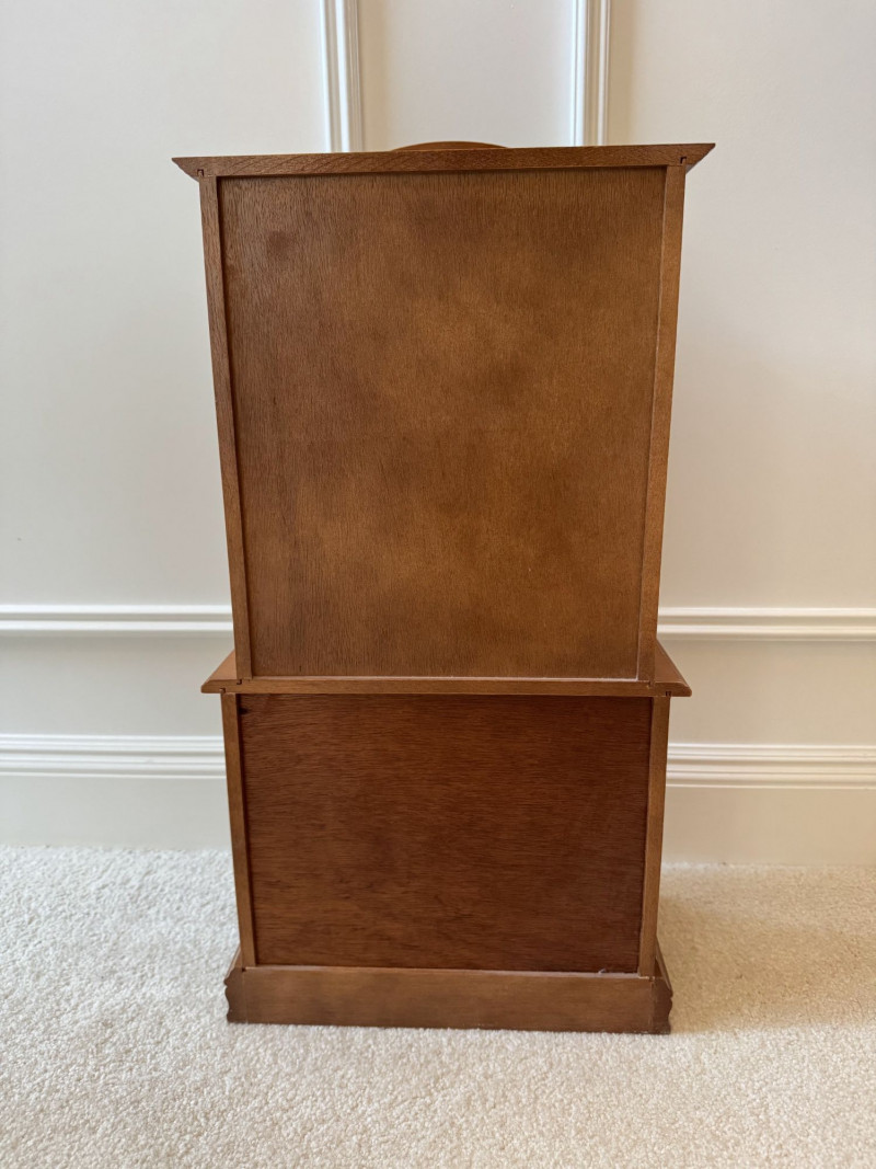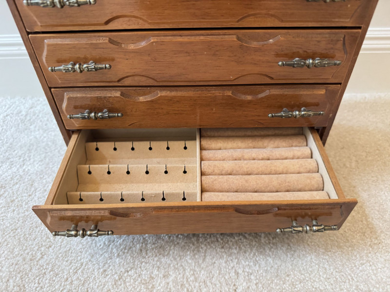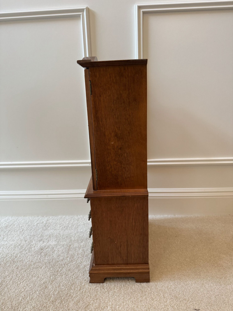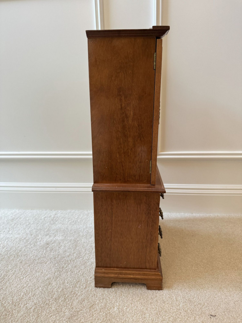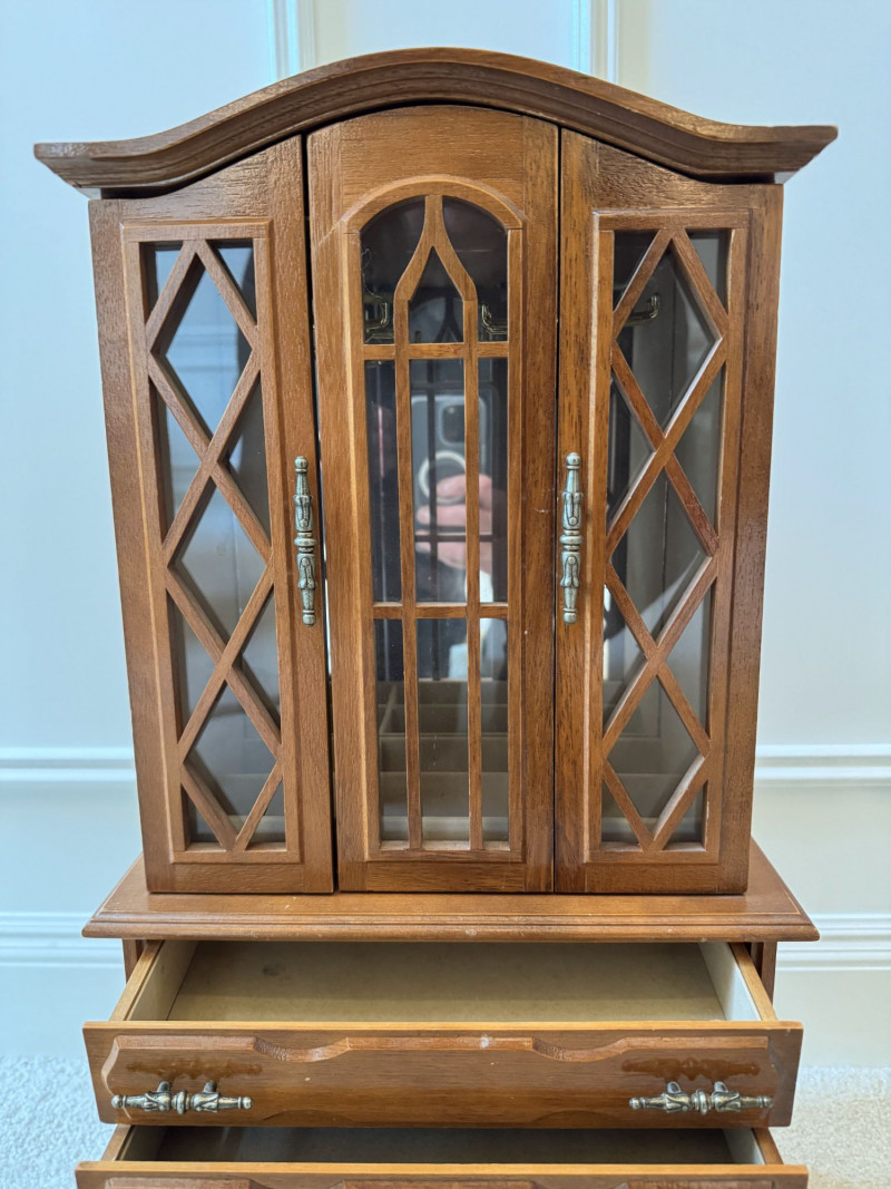 Petite Vintage Style Wood Jewelry Armoire w/ Mirror & Drawers.