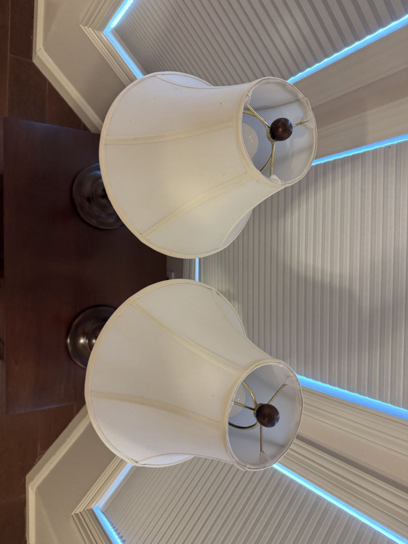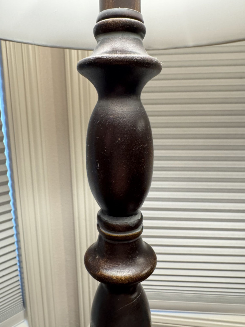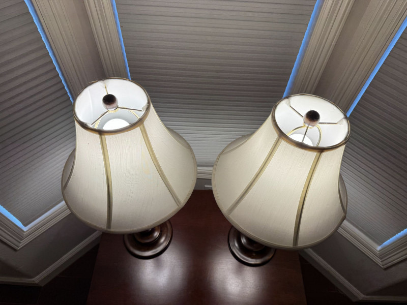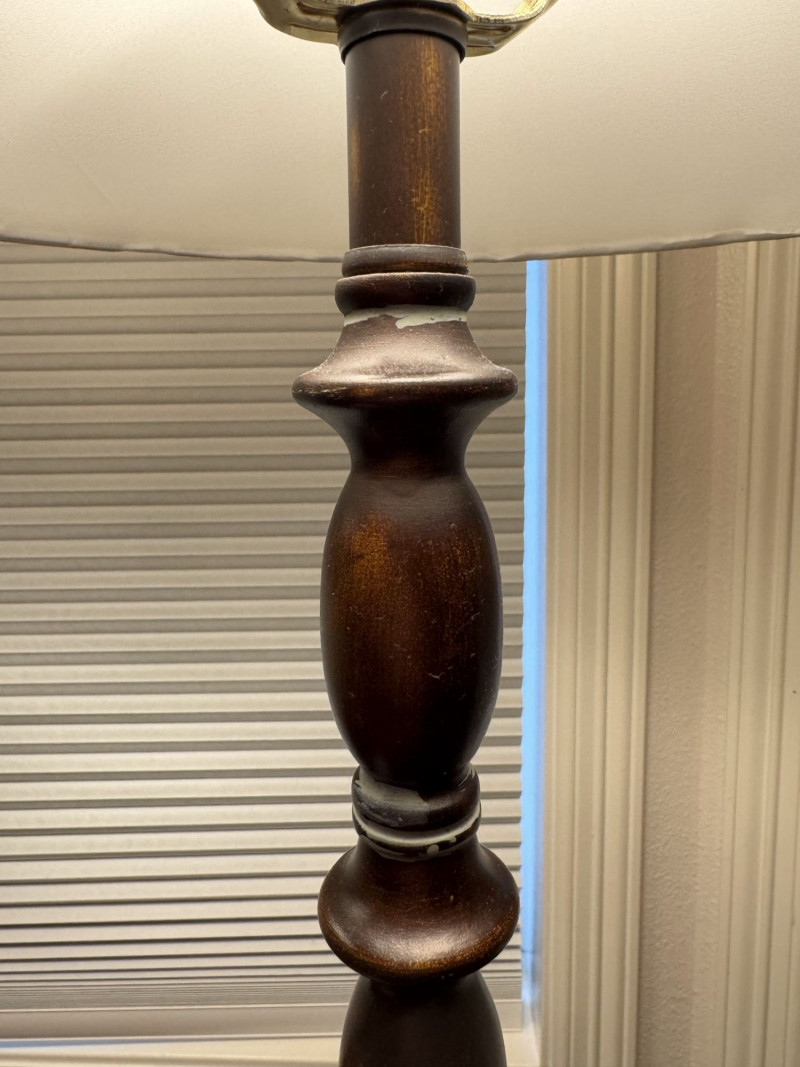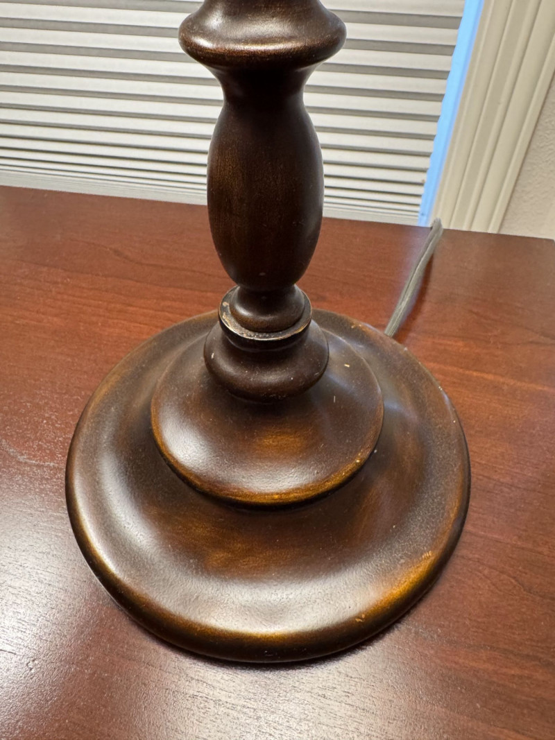 Lot # 15 - Pair Wood-Base Table Lamps w/ Cream Colored Fabric Shades