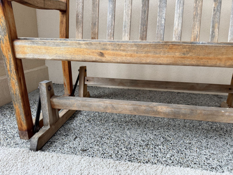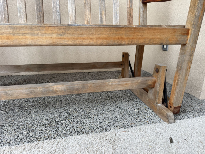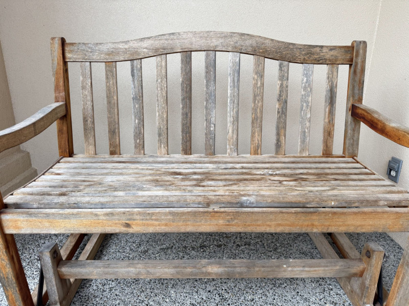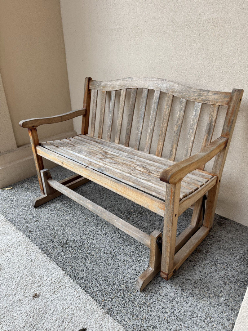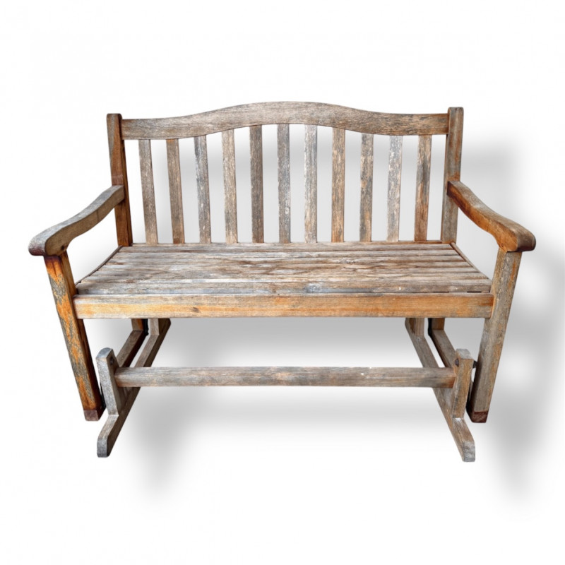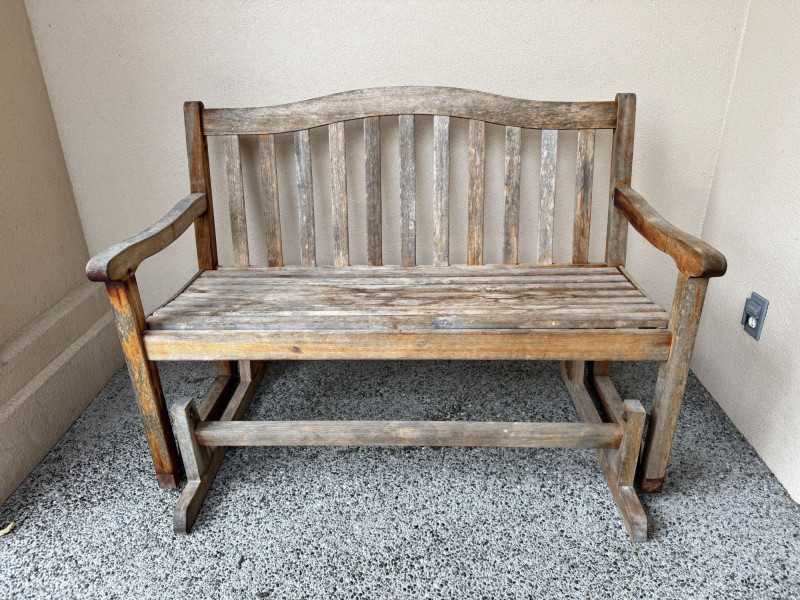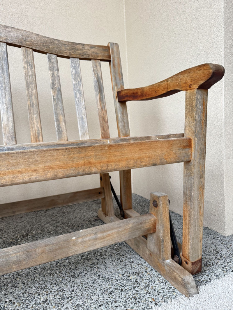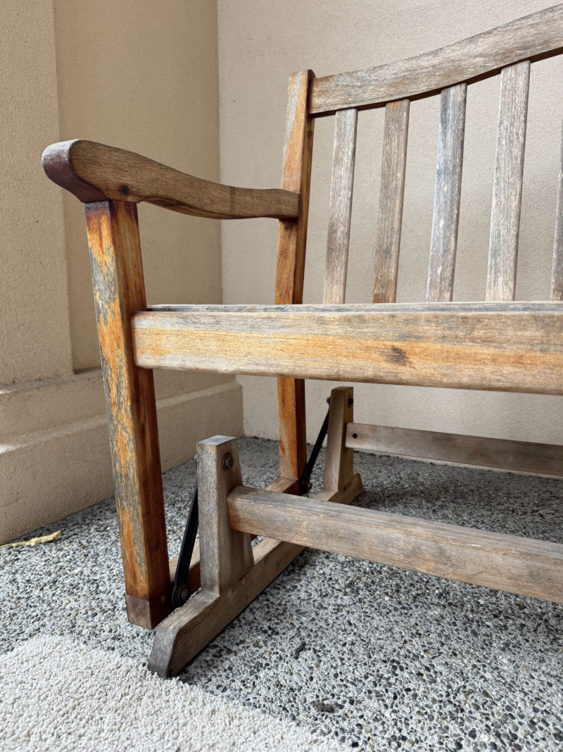 Weathered Wood Outdoor Rocking Bench.