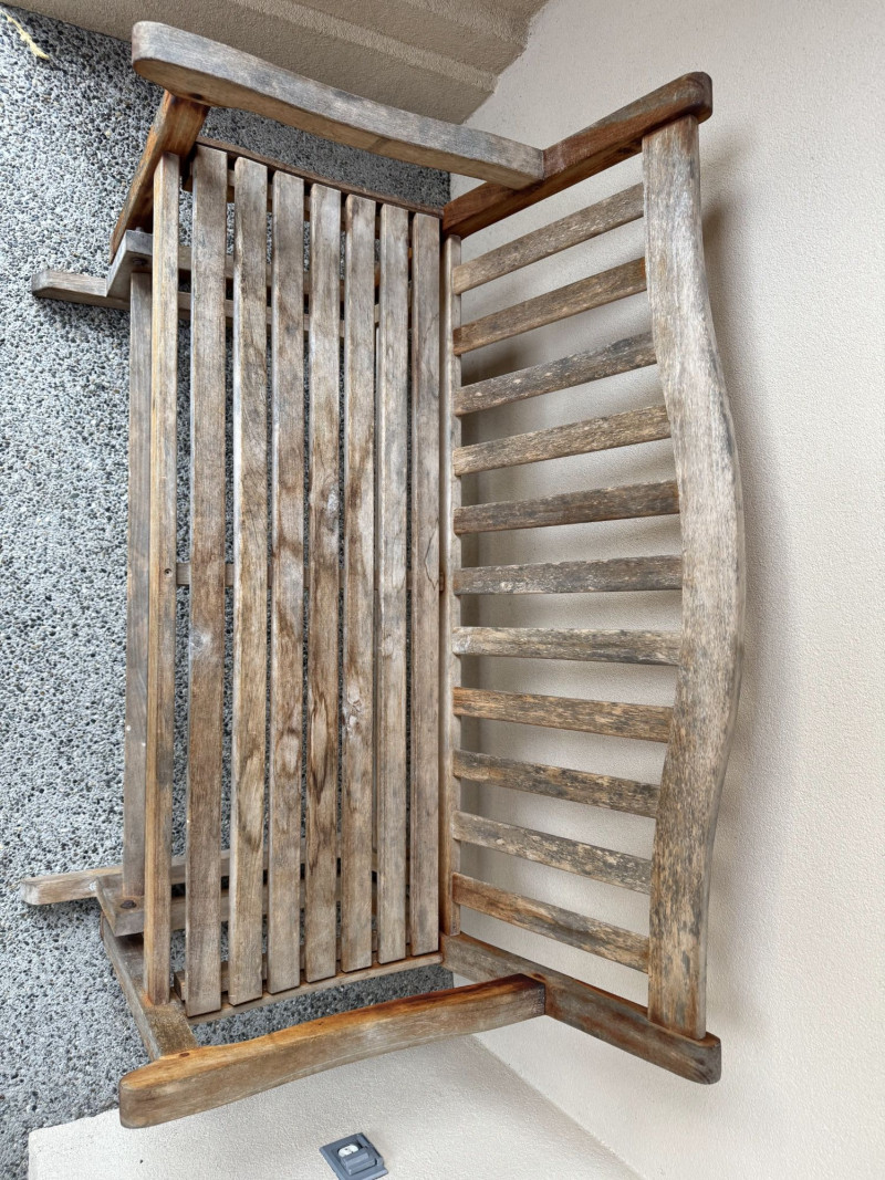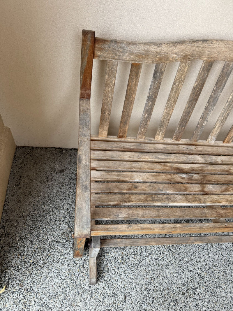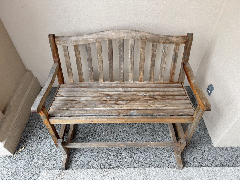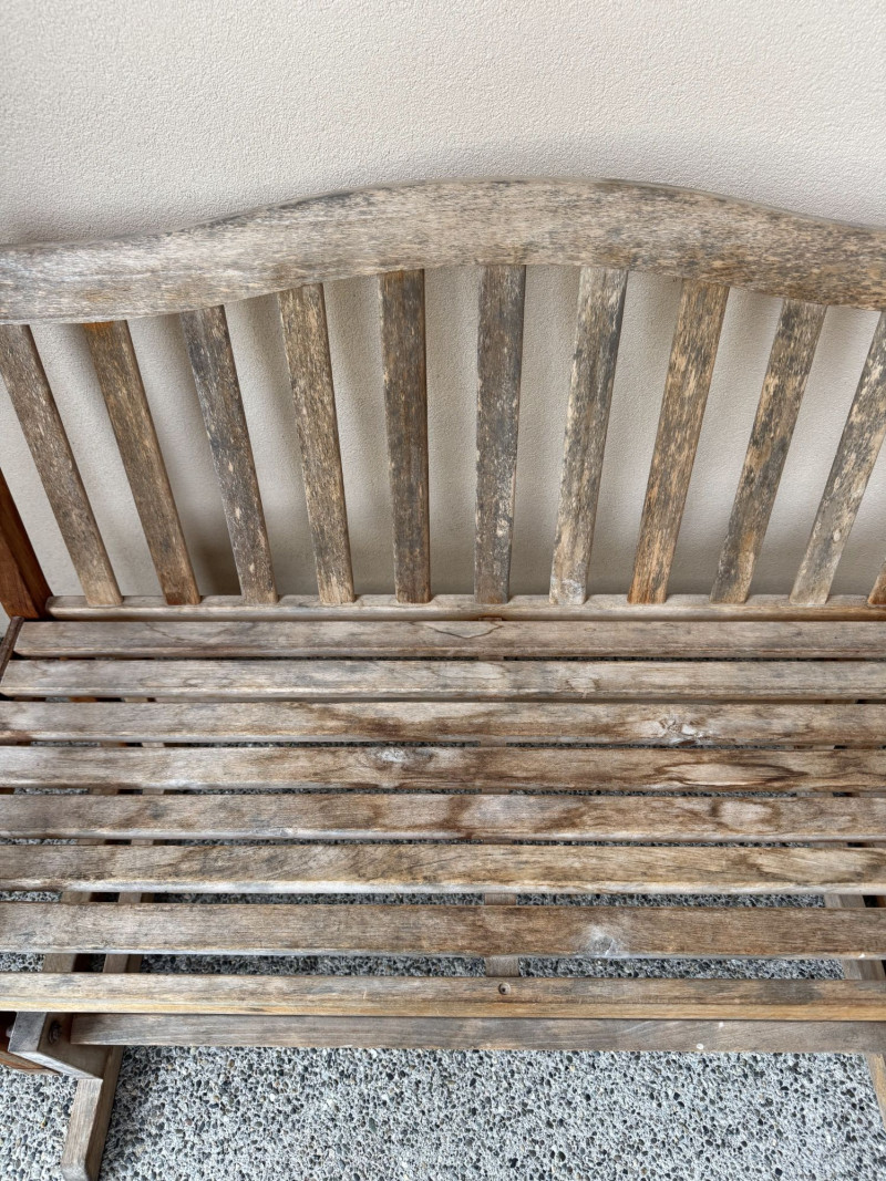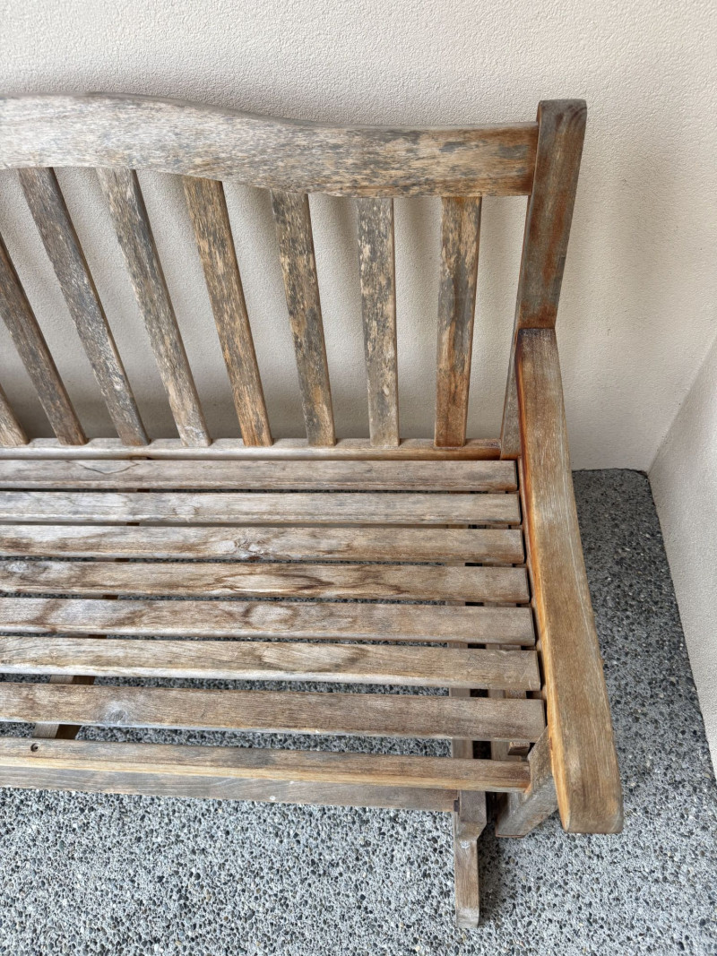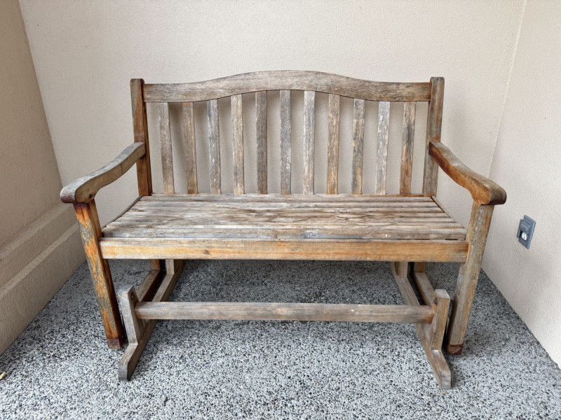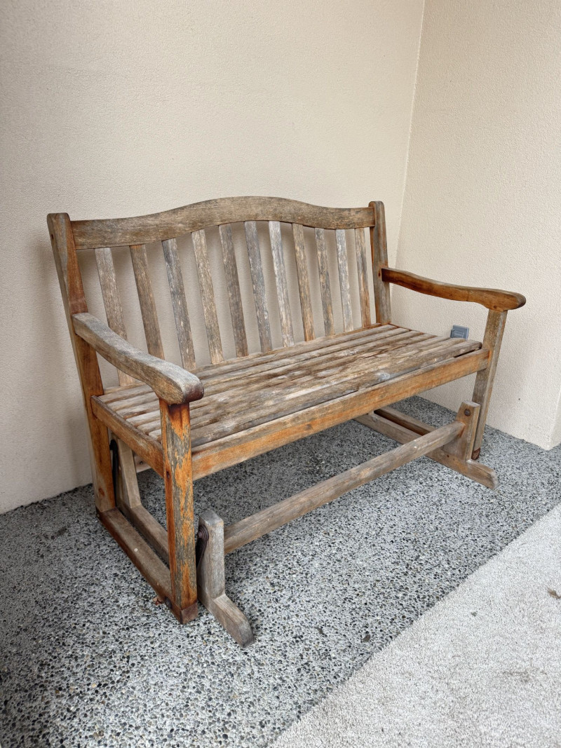 Weathered Wood Outdoor Rocking Bench.