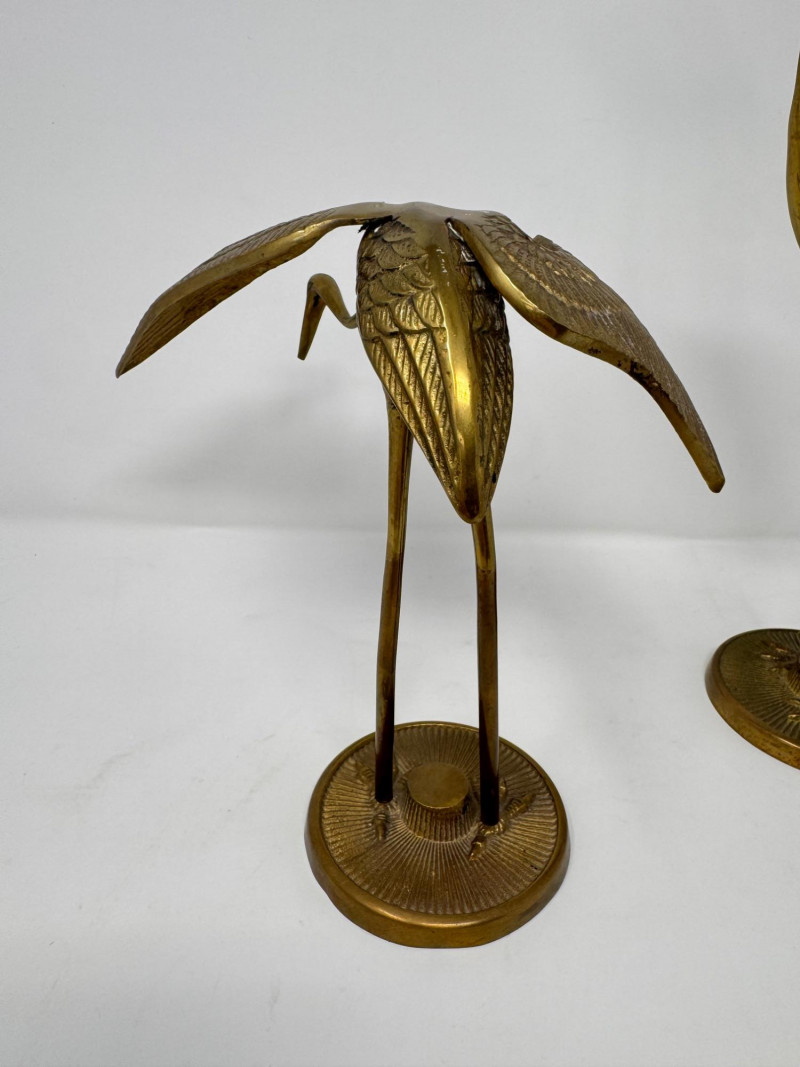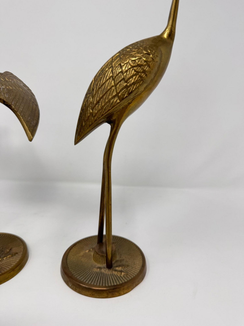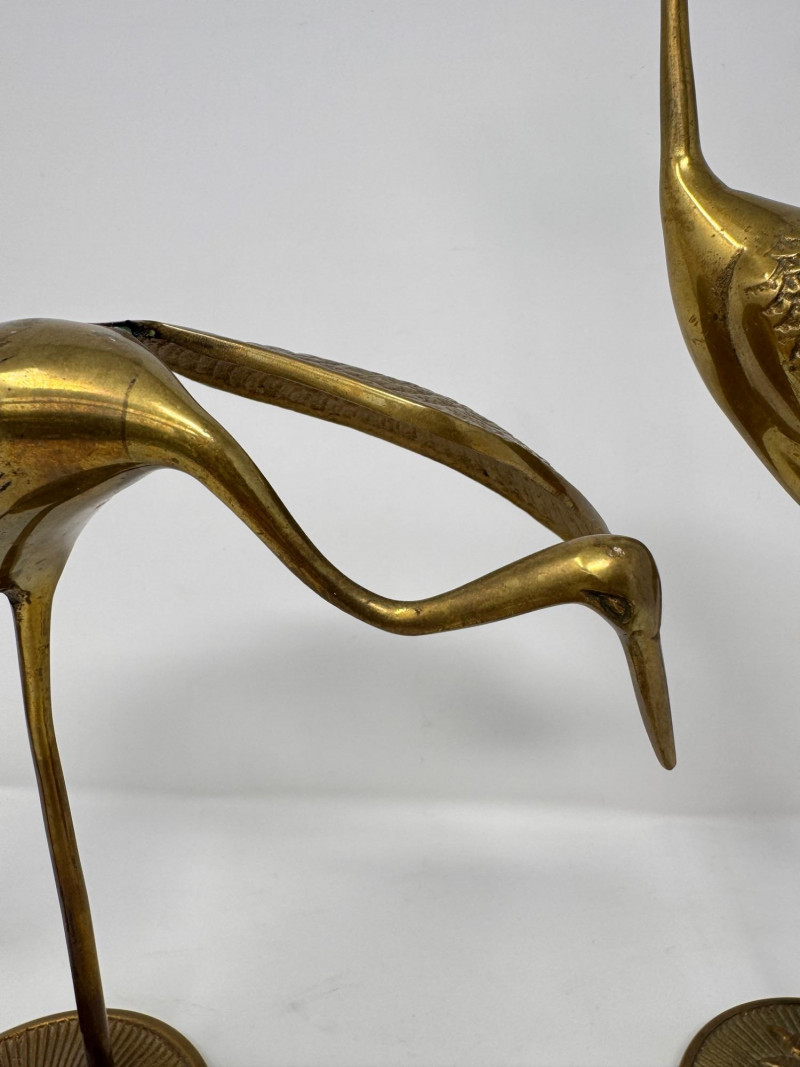 Lot # 41 - Vintage Brass Crane Stork Bird Statues - Set of 2