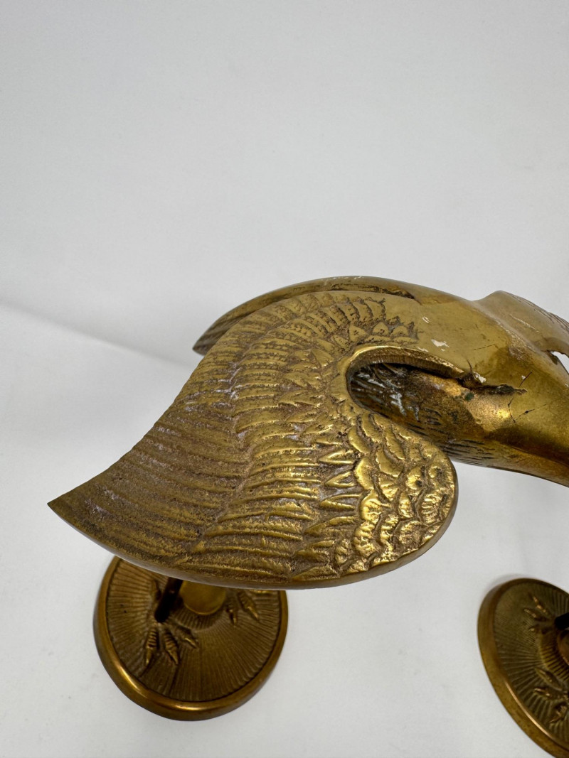 Vintage Brass Crane Stork Bird Statues - Set of 2.