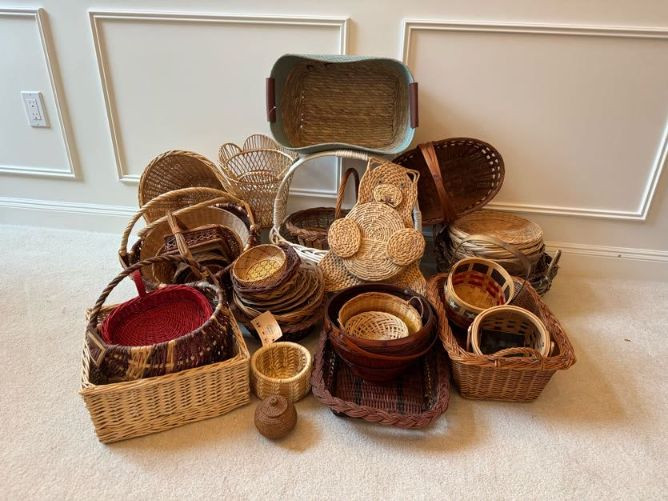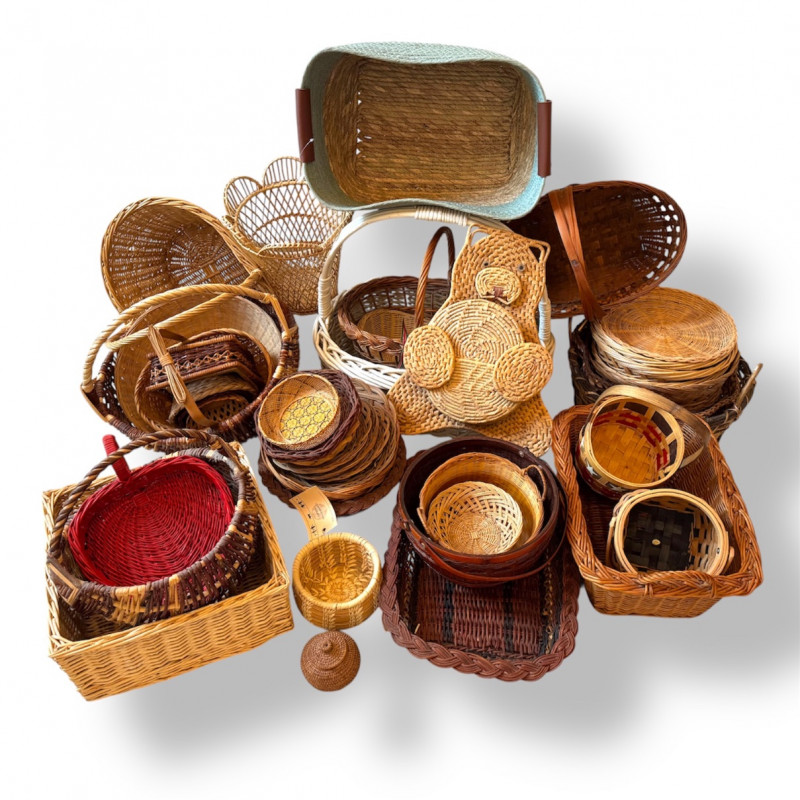 43pc Large Woven Basket Assortment - Various Sizes, Shapes, & Styles.