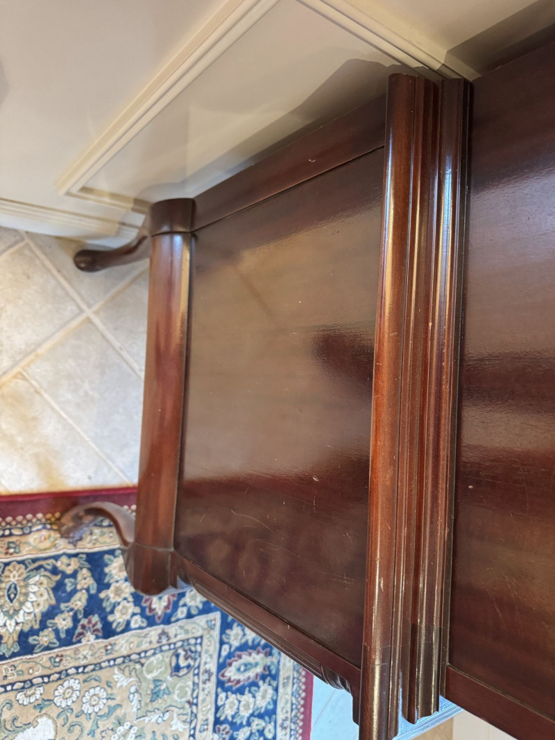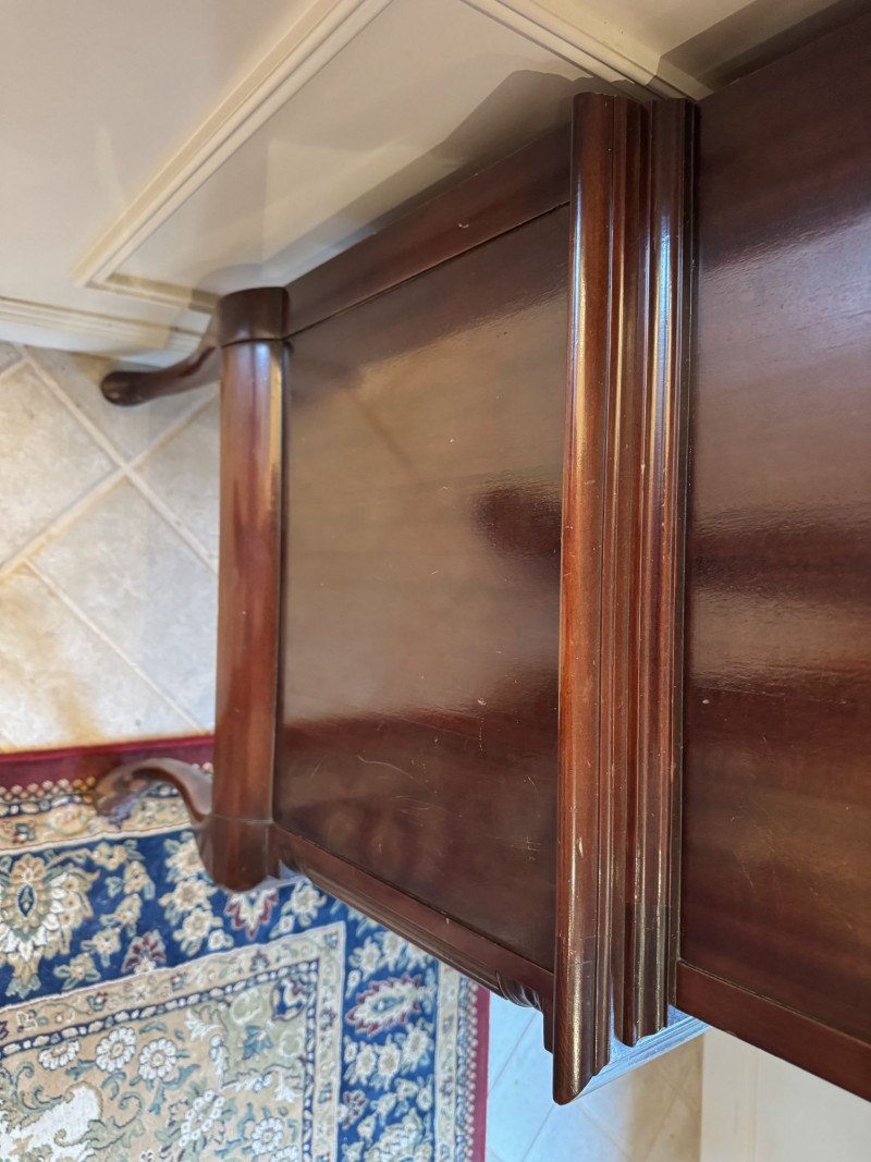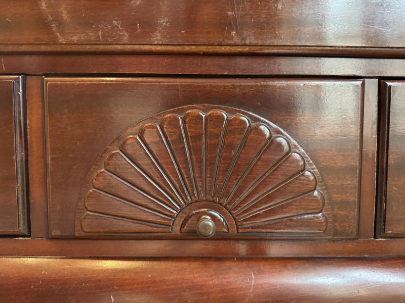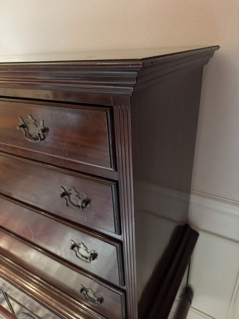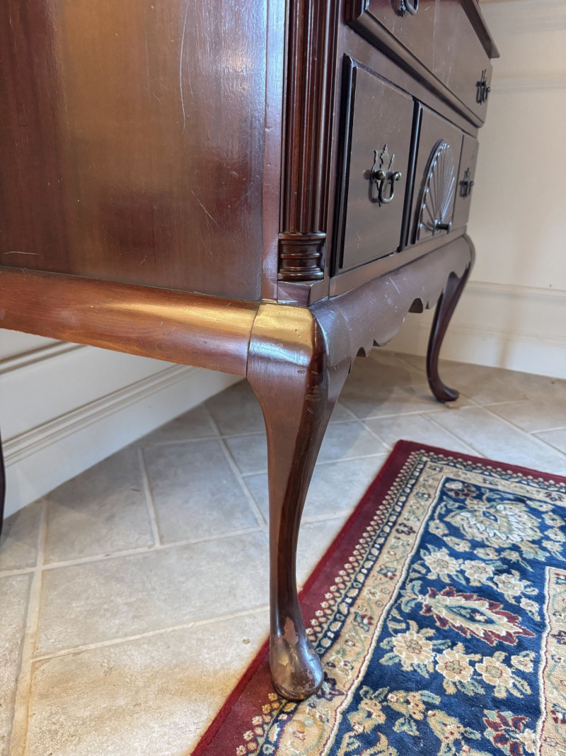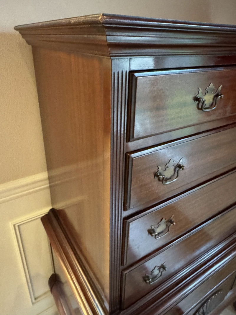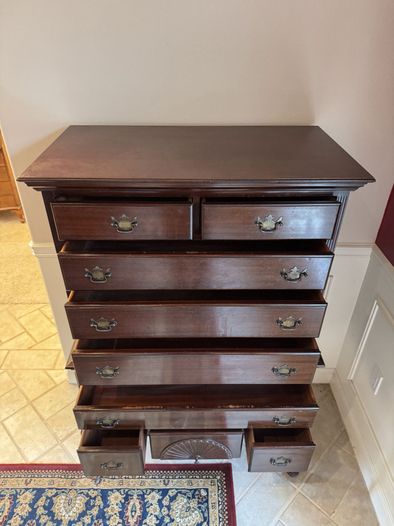Queen Anne Style Mahogany Highboy Dresser - Heavy. Note: This is a very heavy item. Bidding on this lot is an agreement that: (1.) You will have at least 2 capable, able bodied persons to lift and load at a minimum. (2.) You will bring a hand truck and/or any other tools needed to remove this item. If these steps are not followed your item will be forfeit and no refund given.