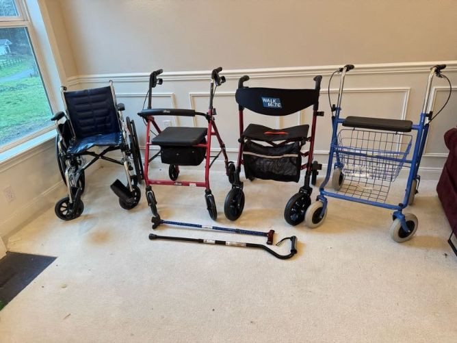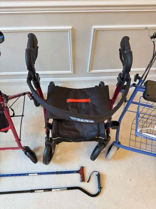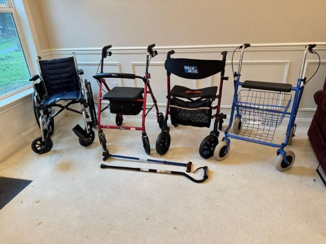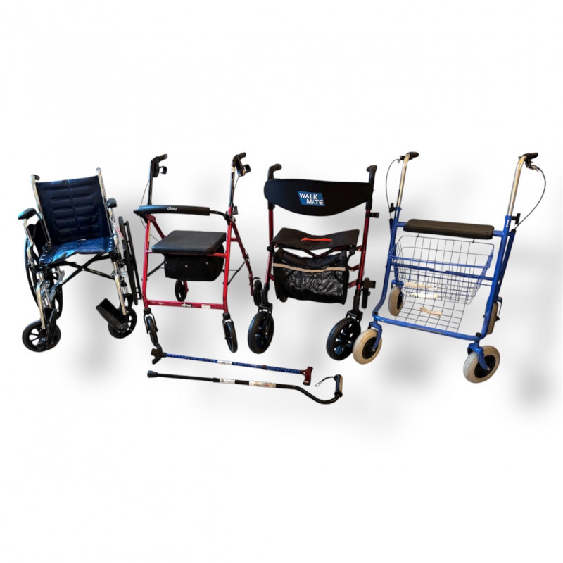 Assorted Mobility Aids - Rollators, Wheelchair, Walkers & Canes.