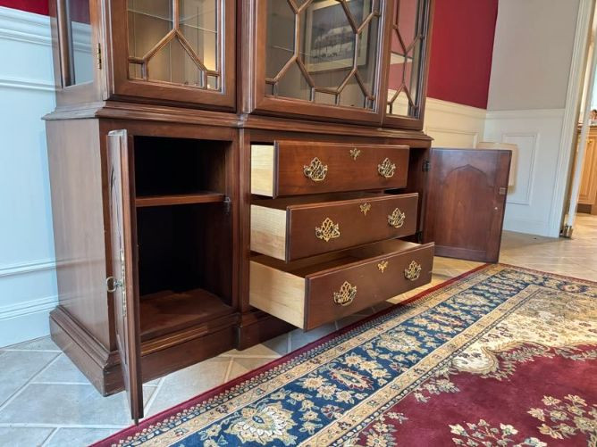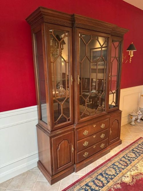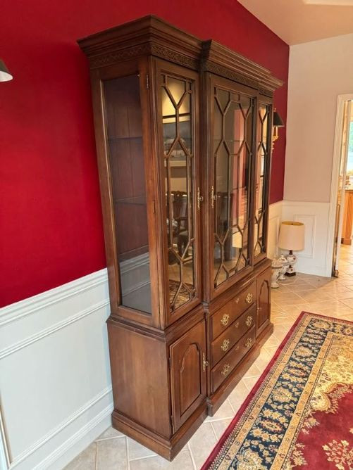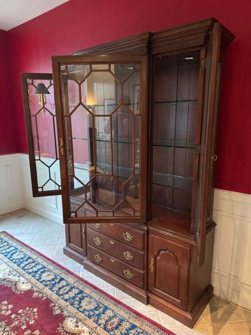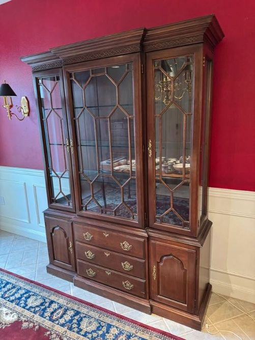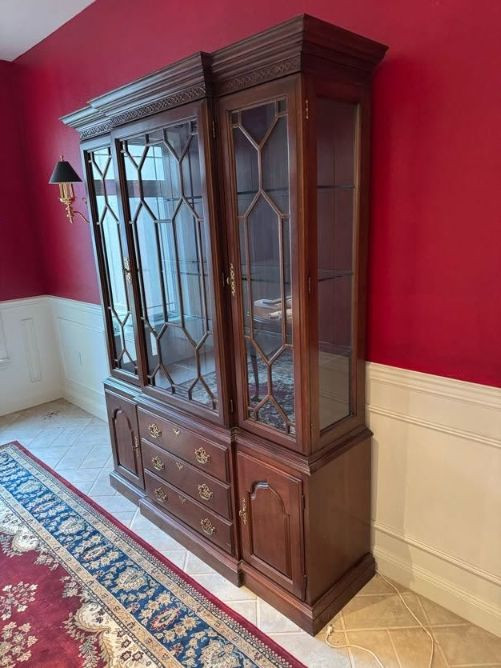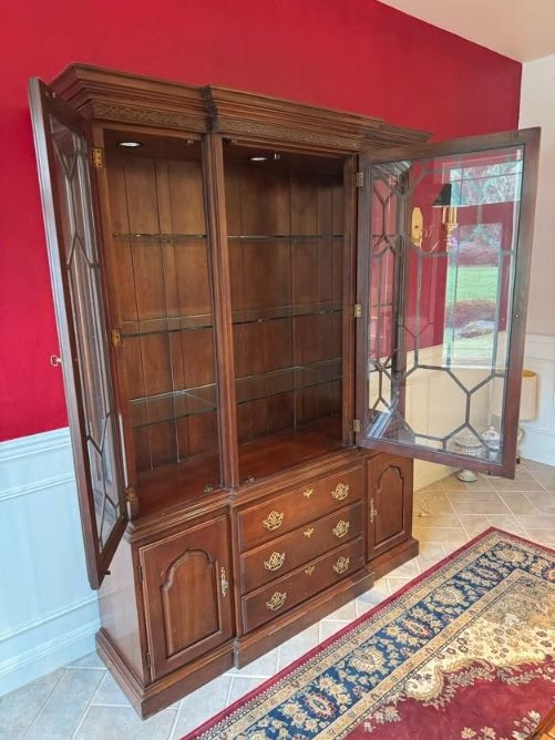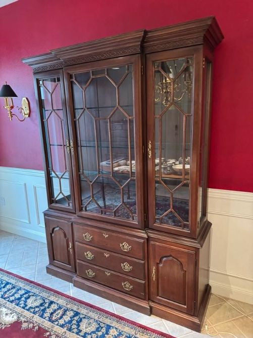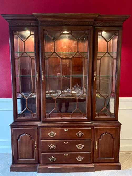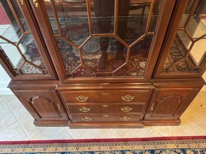 Harden Cherry China Cabinet w/ Lighted Glass Display, Dovetail Drawers. Disclaimer: