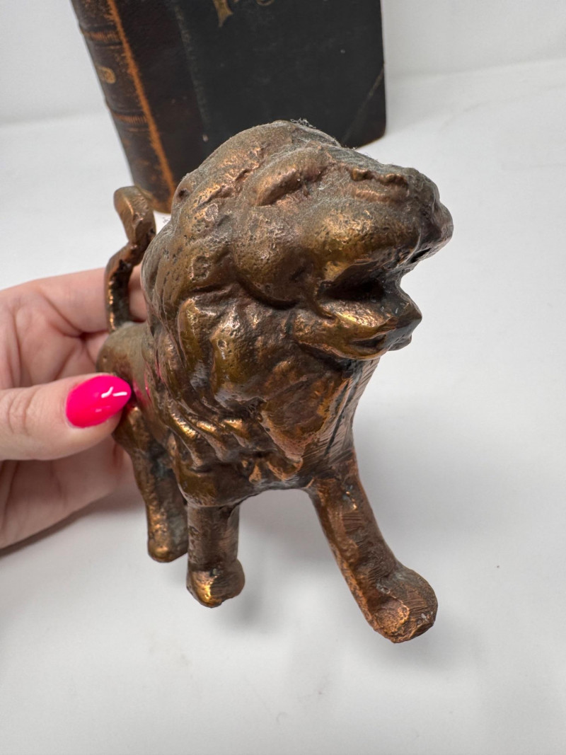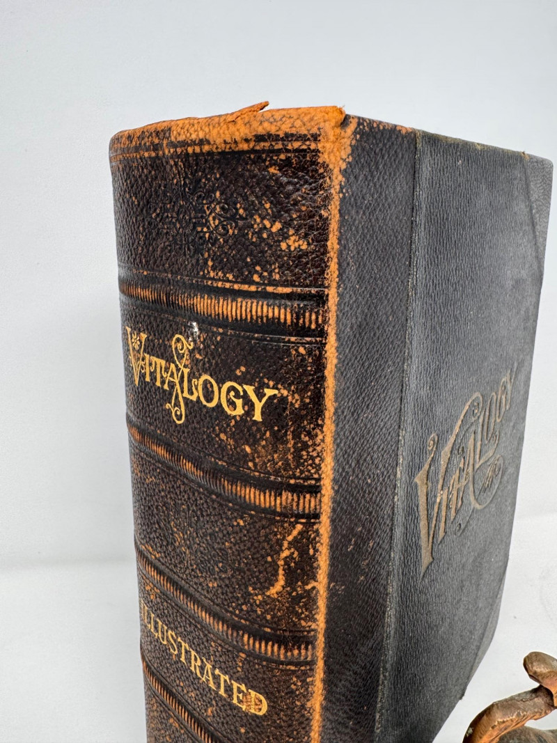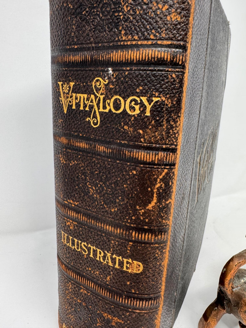 Lot # 58 - 1906 Leather Bound Antique Vitalogy Book w/ Cast Metal Lion Figurine