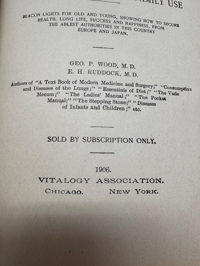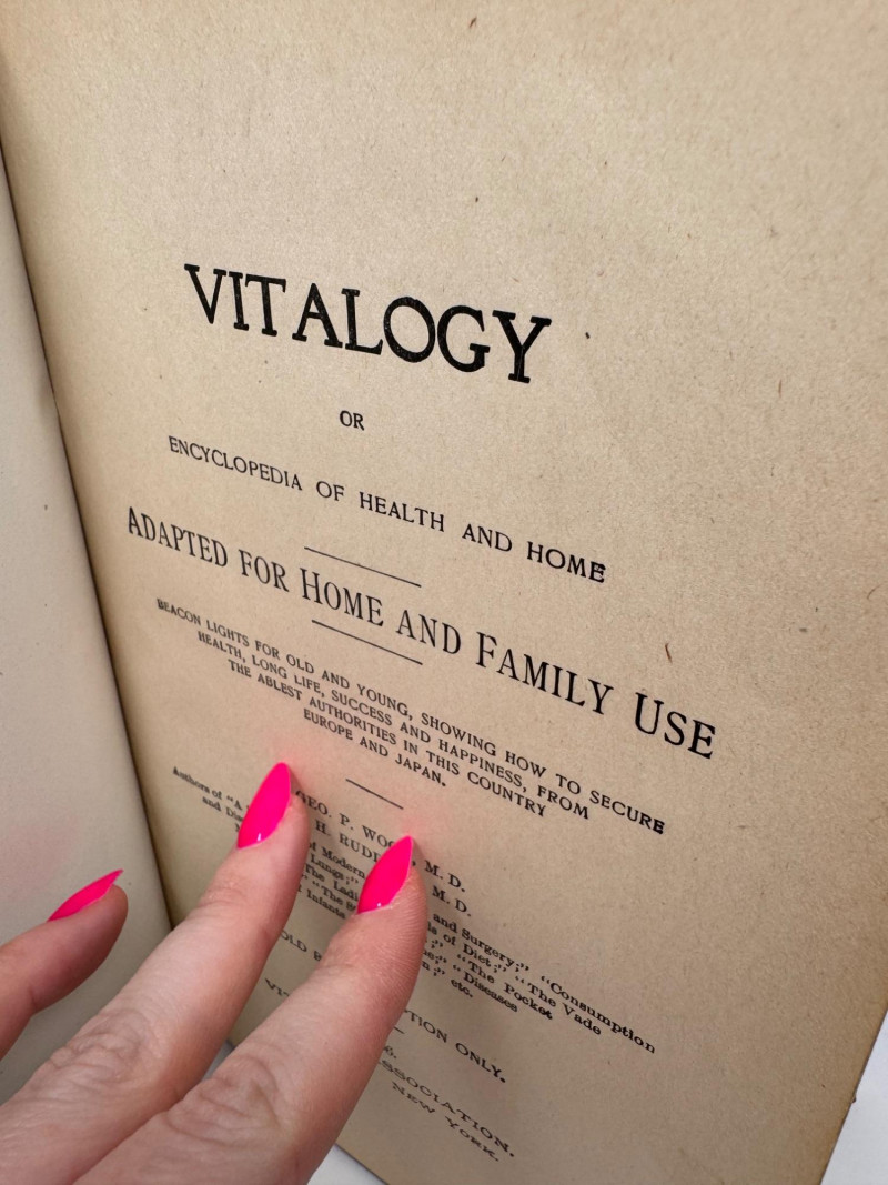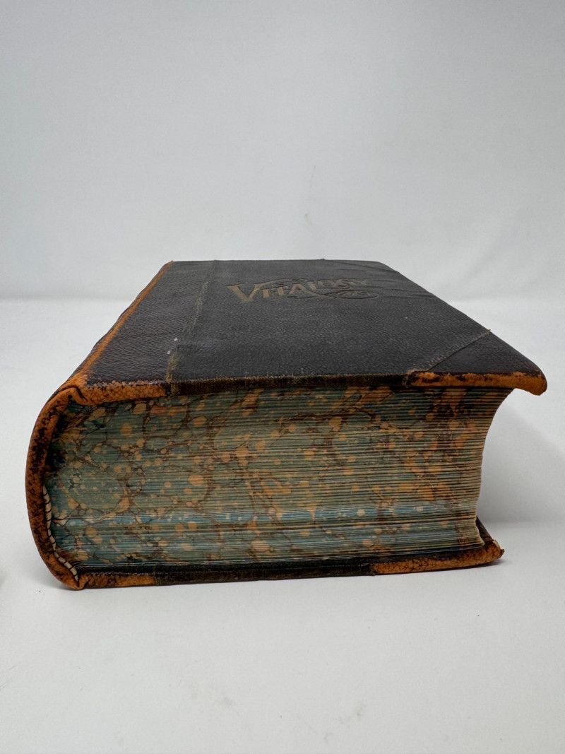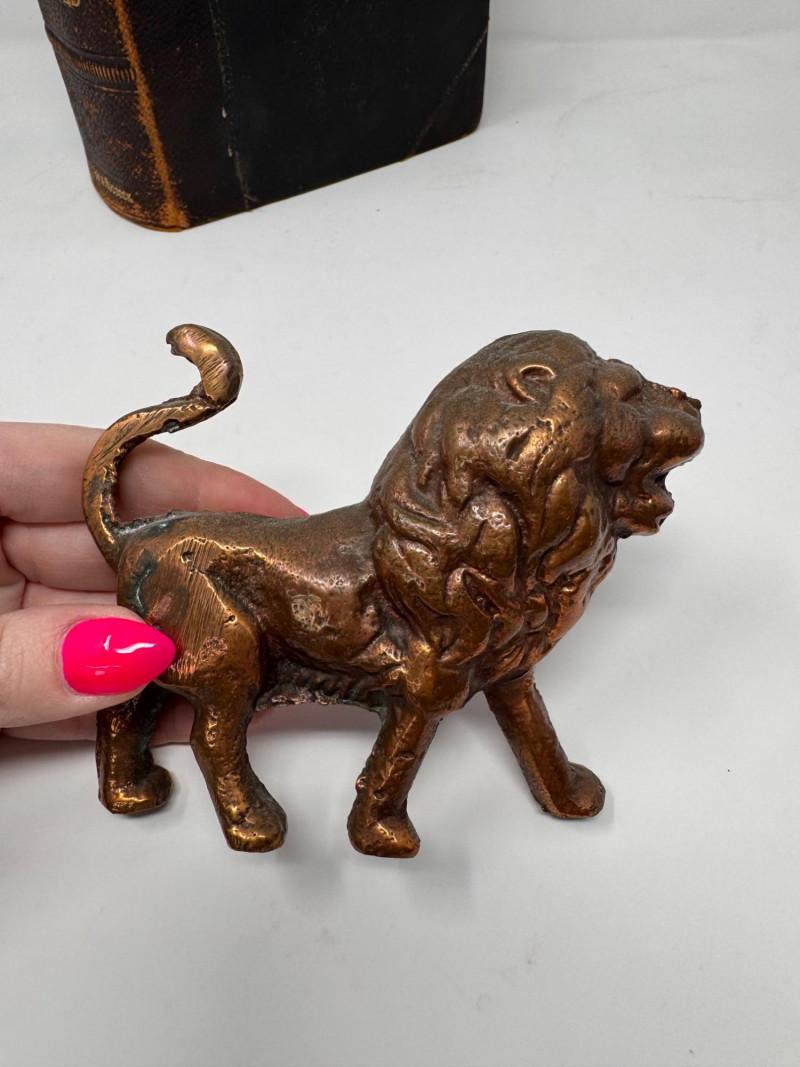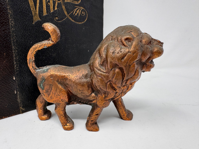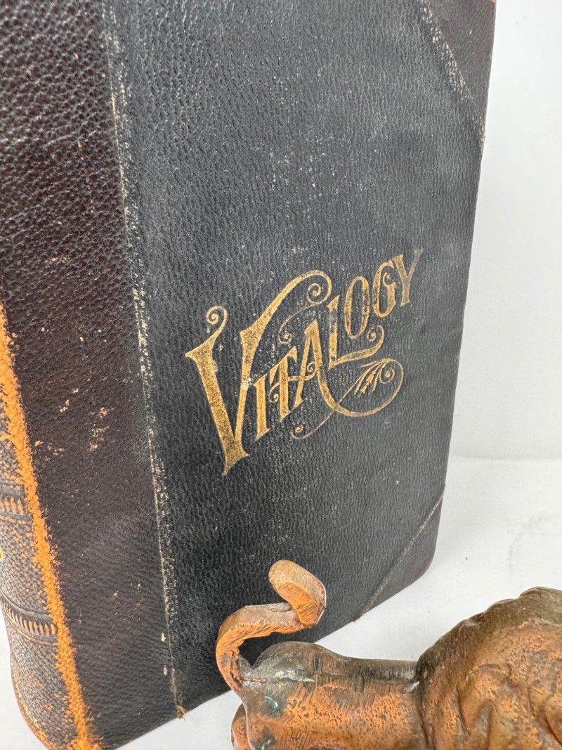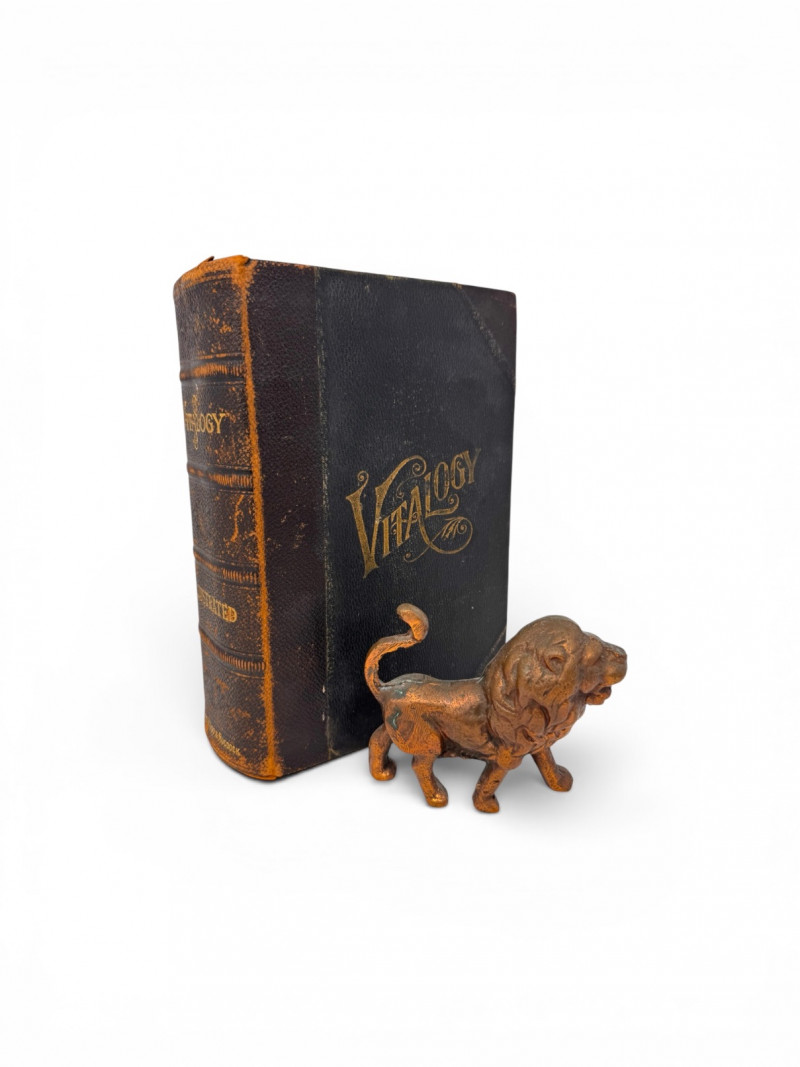 1906 Leather Bound Antique Vitalogy Book w/ Cast Metal Lion Figurine.