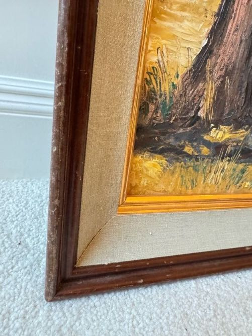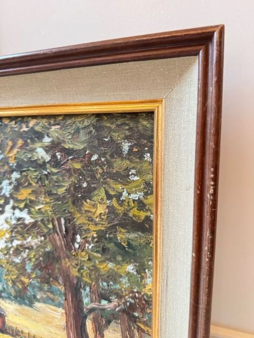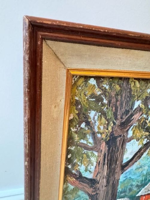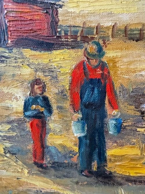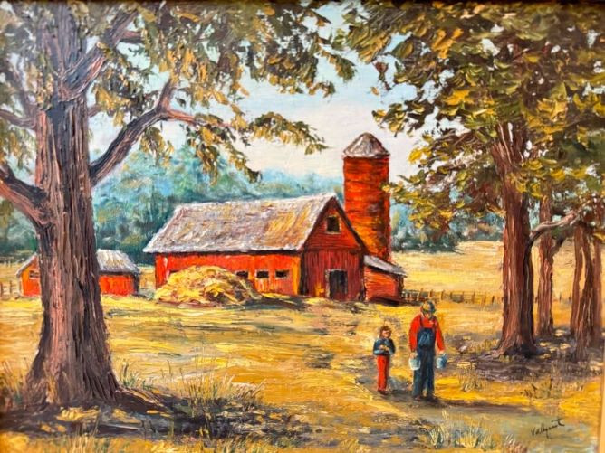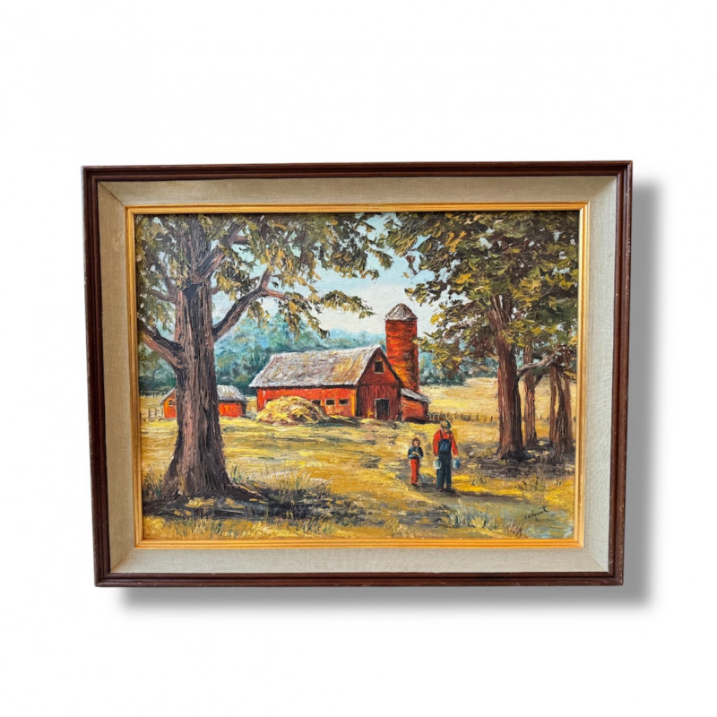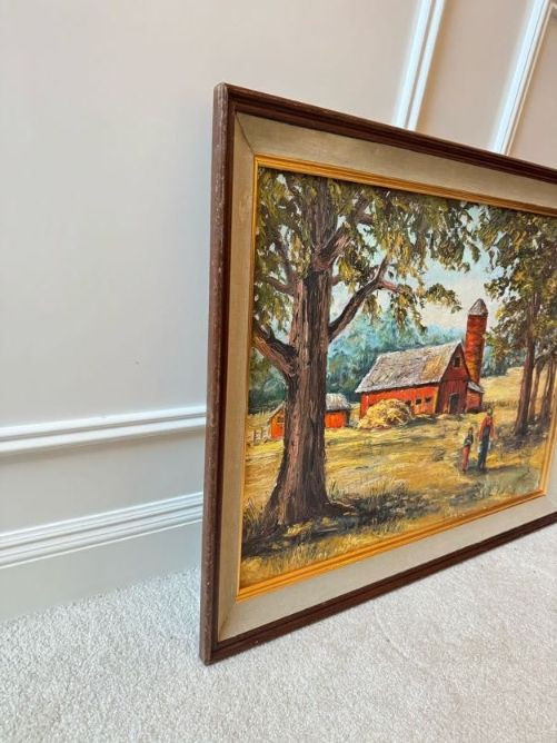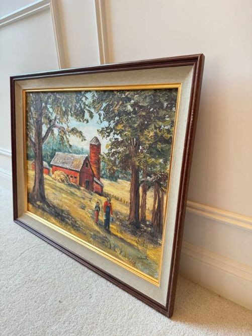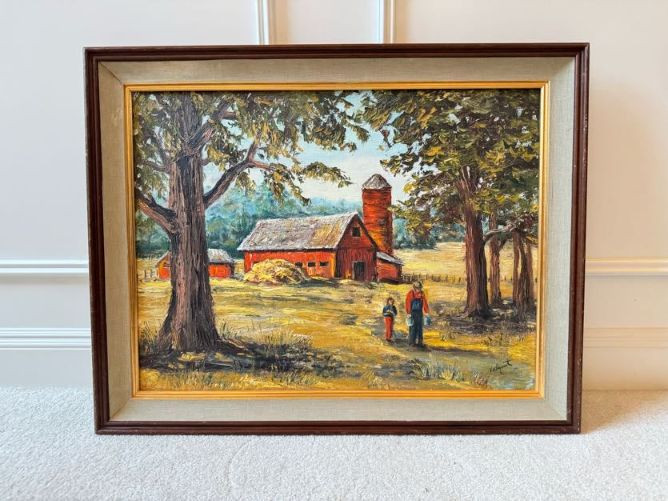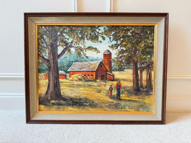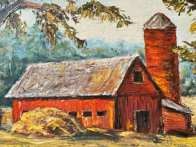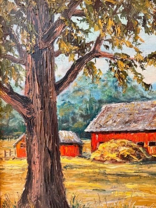 Original Oil Red Barn Painting by Marie Vallquist - Signed 1971.