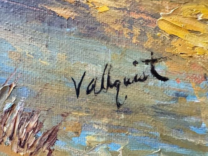 Lot # 50 - Original Oil Red Barn Painting by Marie Vallquist - Signed 1971