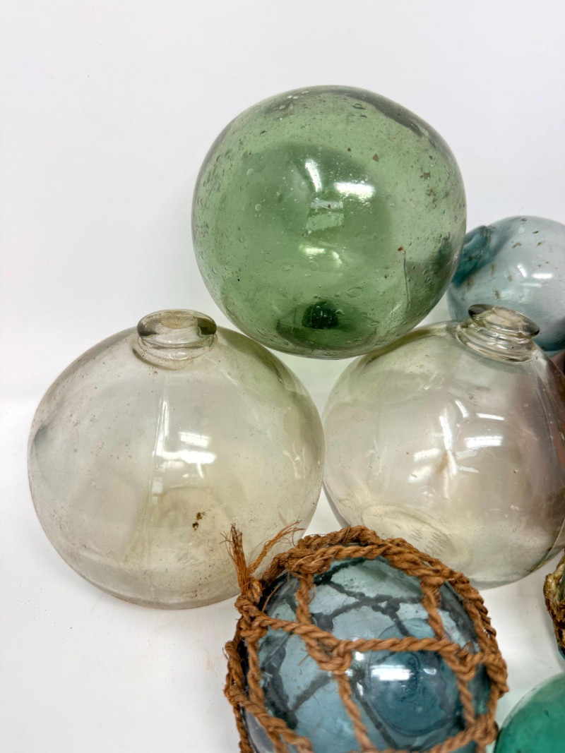 Lot # 61 - Vintage Glass Fishing Floats - Clear, Green, Blue, Amber
