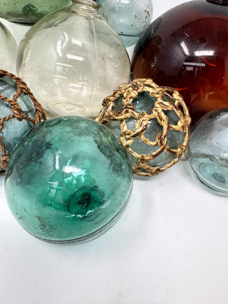 Vintage Glass Fishing Floats - Clear, Green, Blue, Amber.