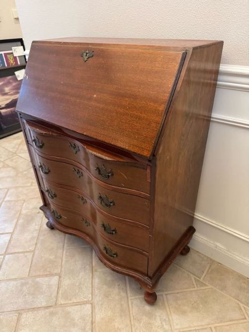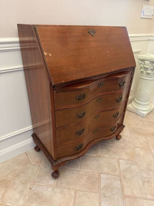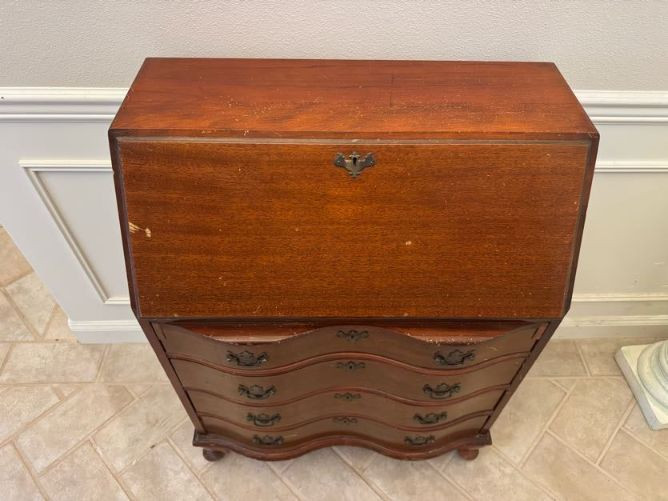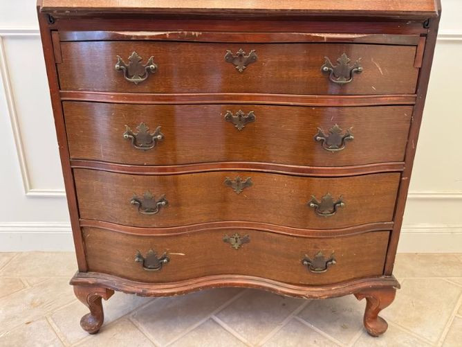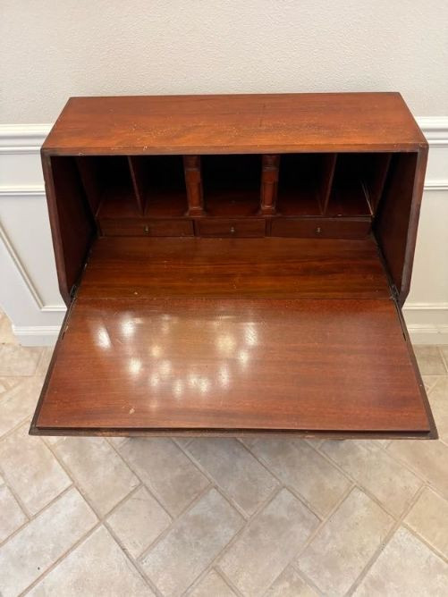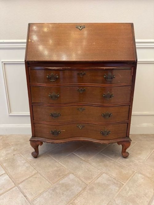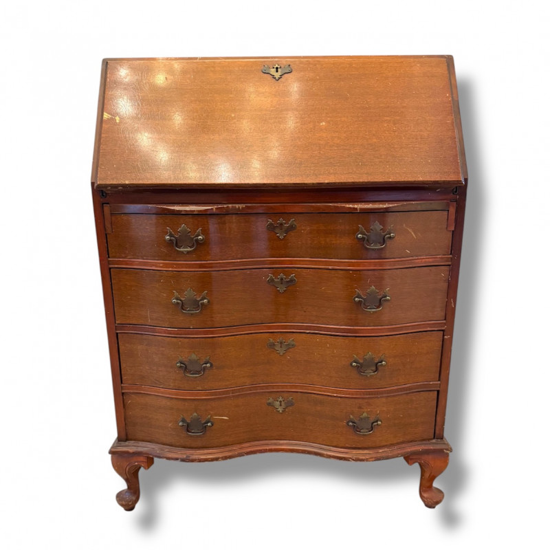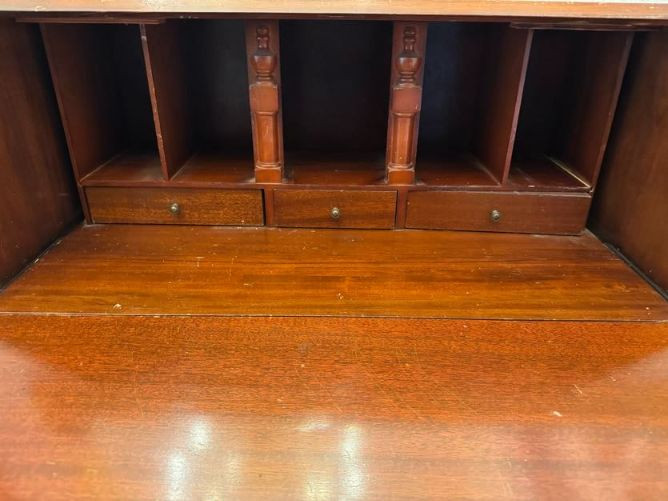 Chippendale Style Secretary Desk - Slant Front Wood.