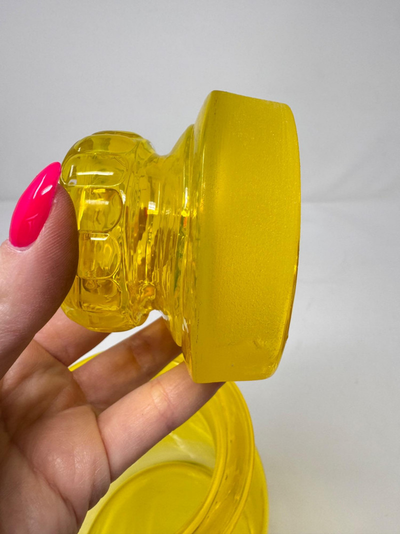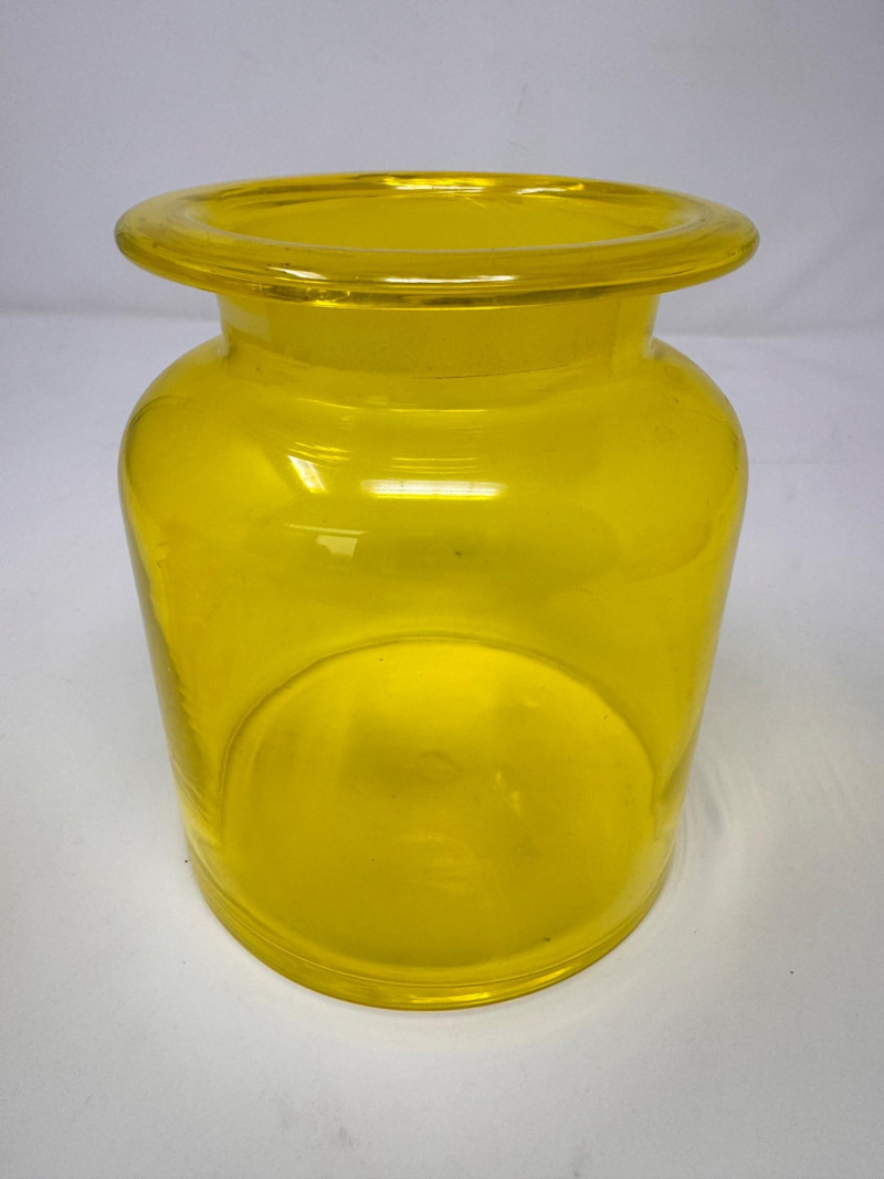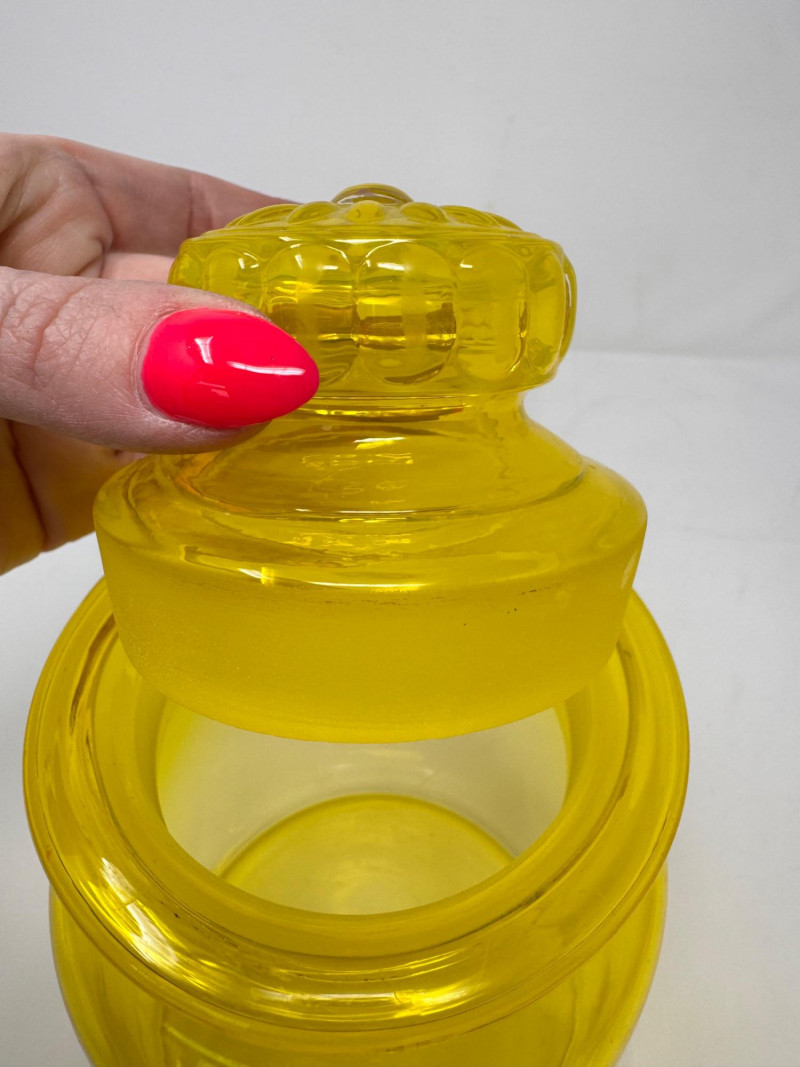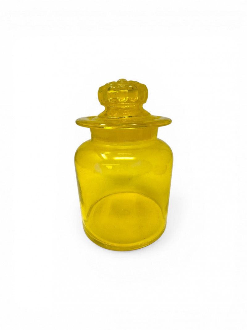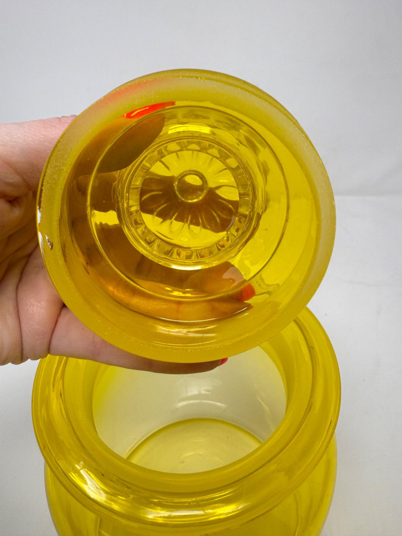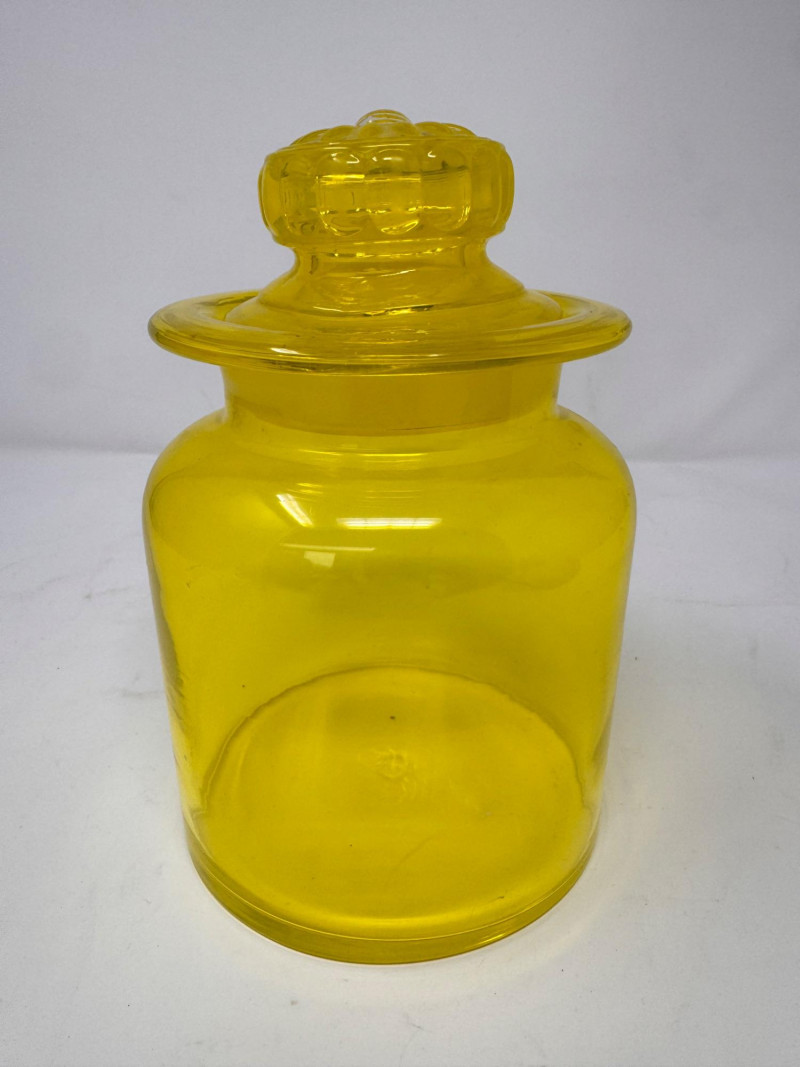Vintage Yellow Glass Lidded Apothecary Jar.