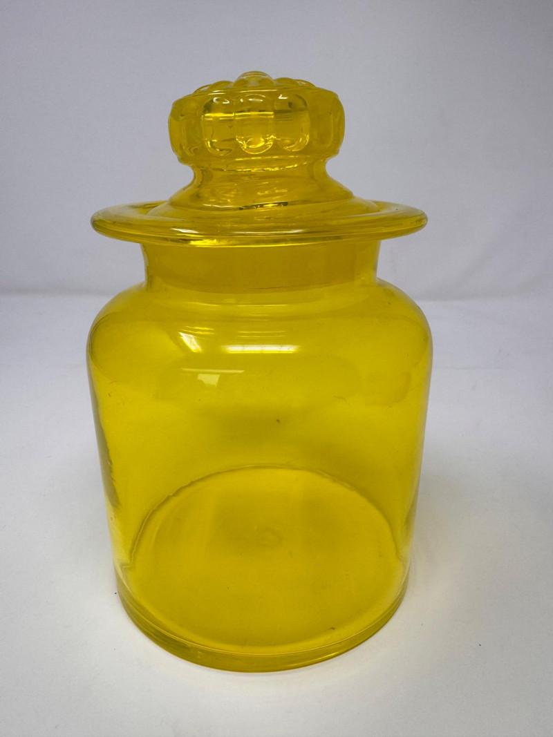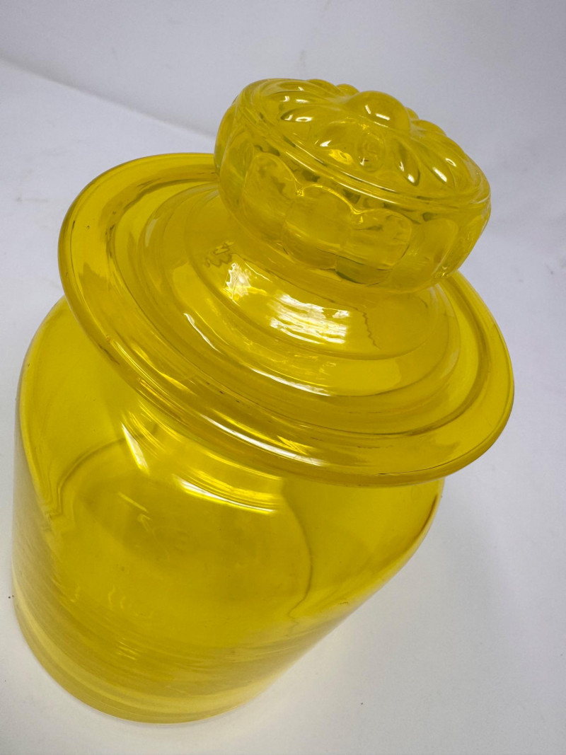 Lot # 68 - Vintage Yellow Glass Lidded Apothecary Jar