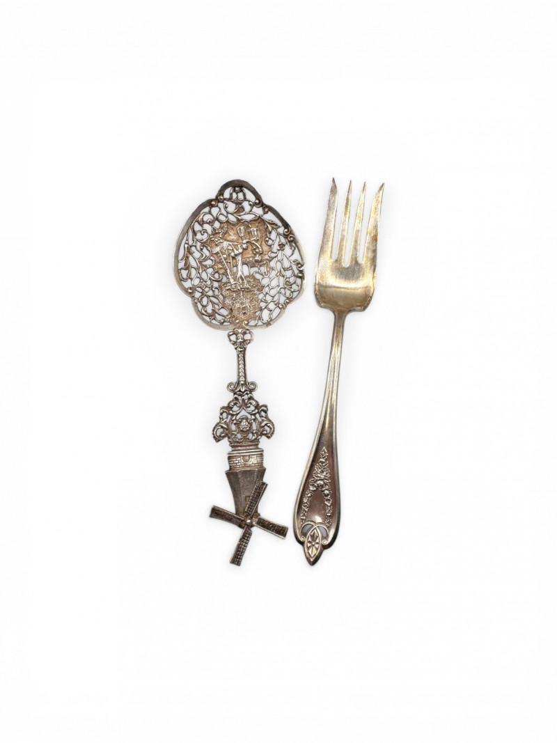Lot # 69 - Large Sterling Silver Pierced Windmill Spoon & Rogers Fork 168.9g