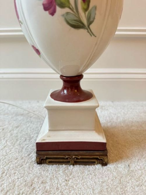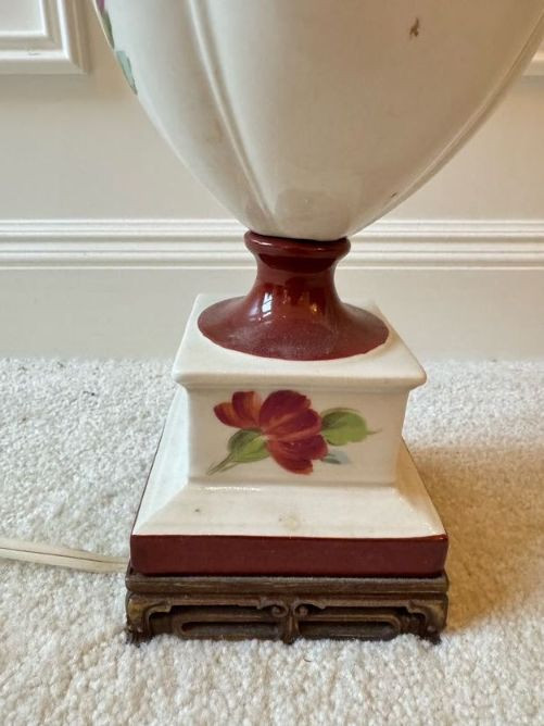 Lot # 76 - Floral Ceramic Urn Shape Table Lamp w/ Red Trim Base & Yellow Shade