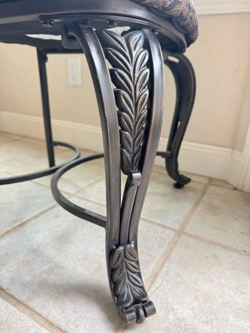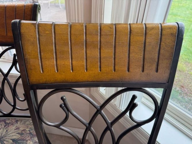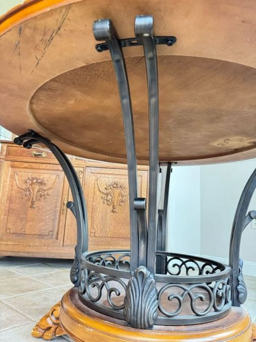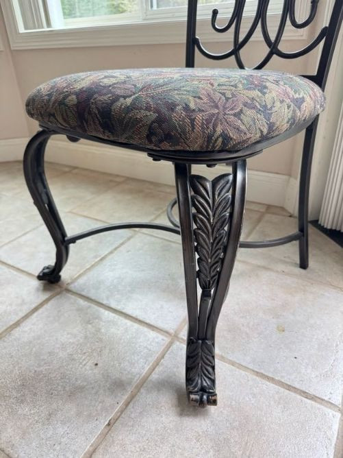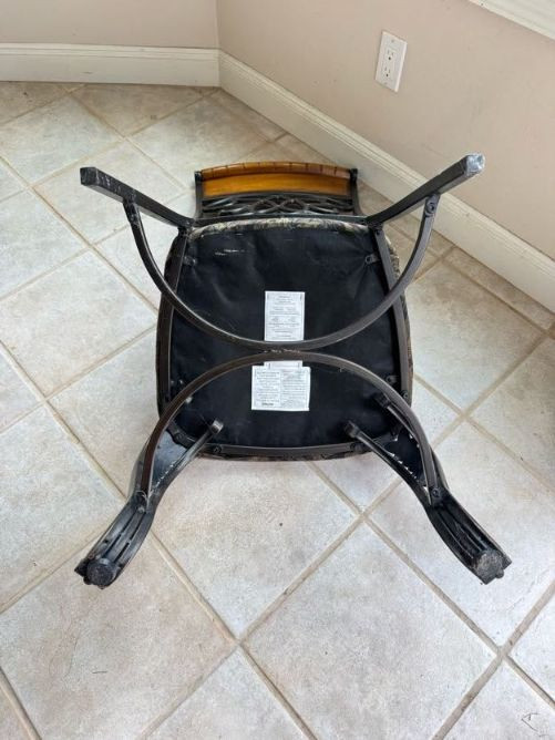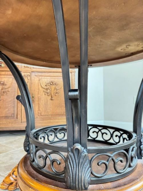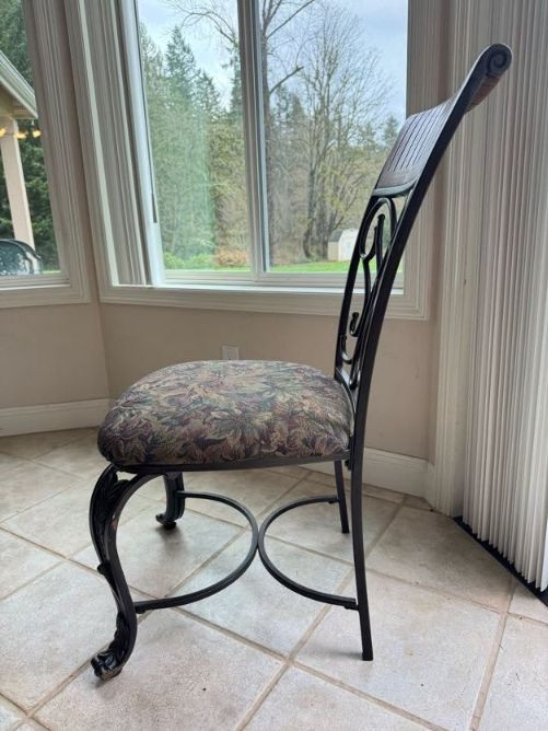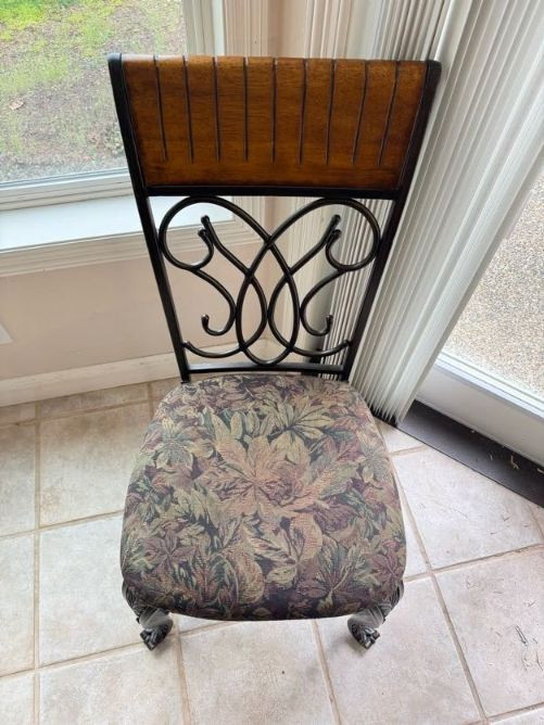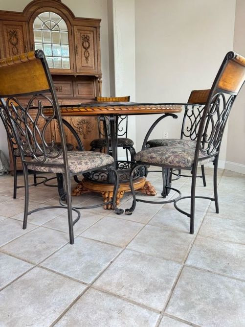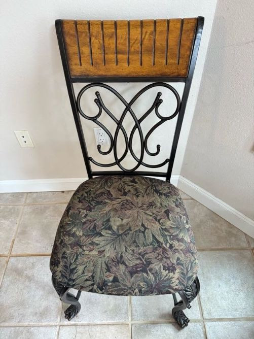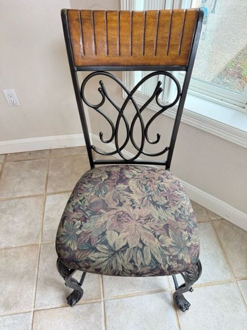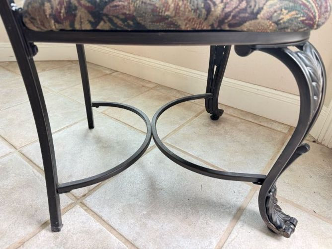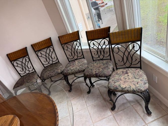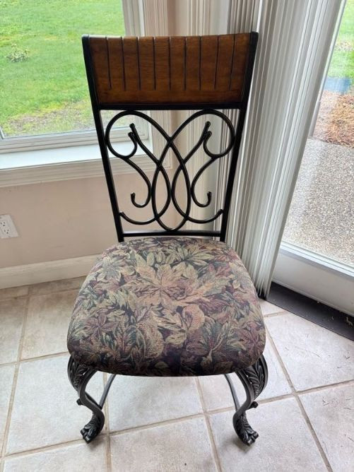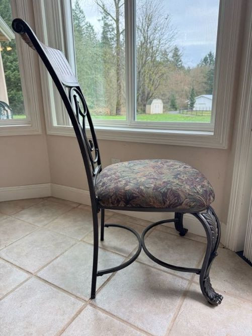 Claw Foot Dining Table w/ Glass Top & Cast Iron Base + 5 Chairs. Bidding on this lot is an agreement that: (1.) You will have at least 2 capable, able bodied persons to lift and load at a minimum. (2.) You will bring a hand truck and/or any other tools needed to remove this item. If these steps are not followed your item will be forfeit and no refund given.