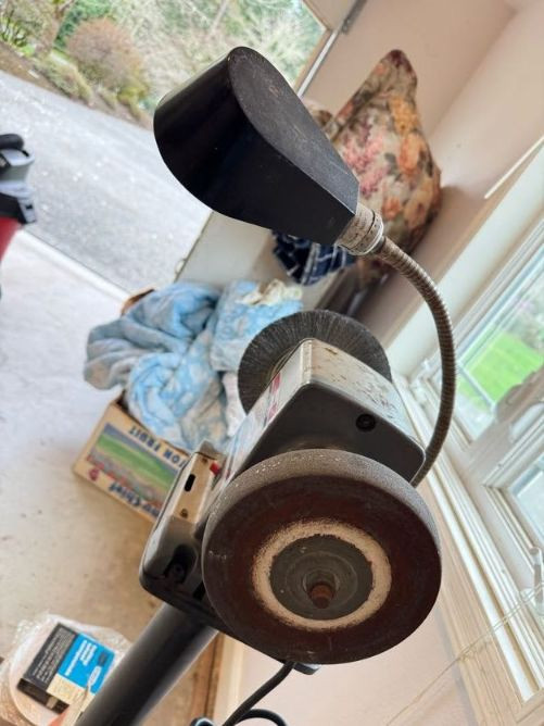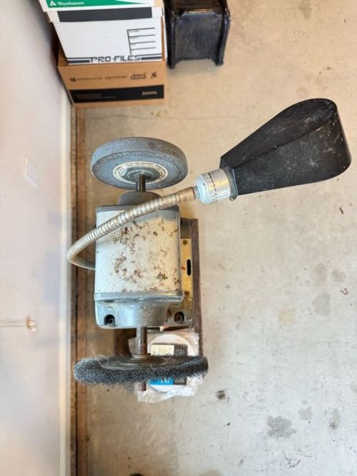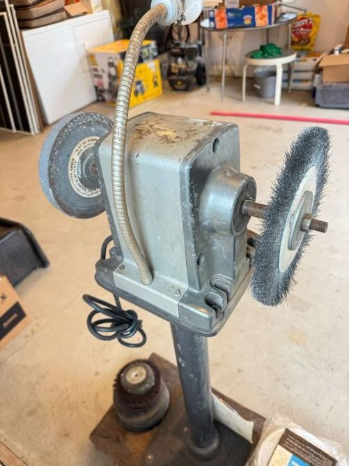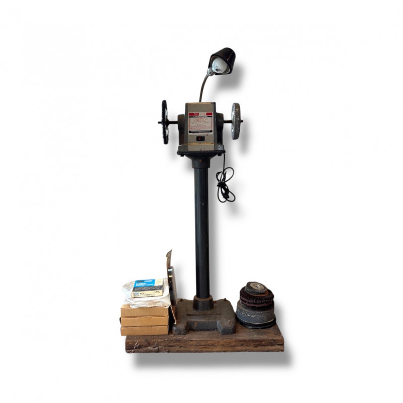 Lot # 85 - Vintage Craftsman Bench Grinder Stand w/ Buffing Wheels & Wire Brush