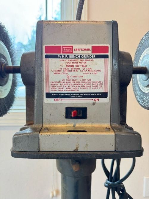 Vintage Craftsman Bench Grinder Stand w/ Buffing Wheels & Wire Brush.
