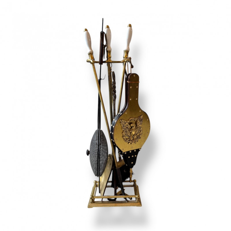 Lot # 108 - Fireplace Tools - Brush, Shovel, Embossed Eagle Bellows +
