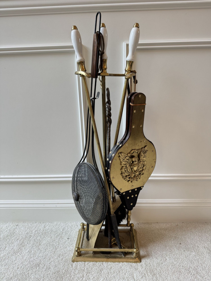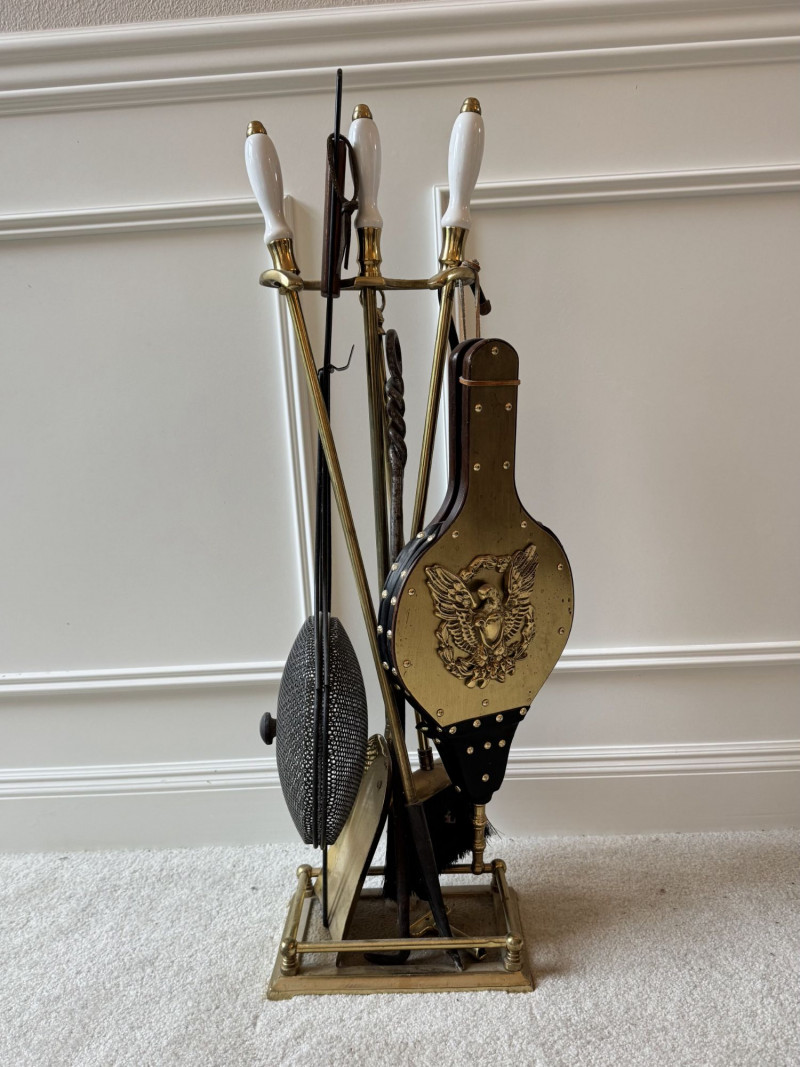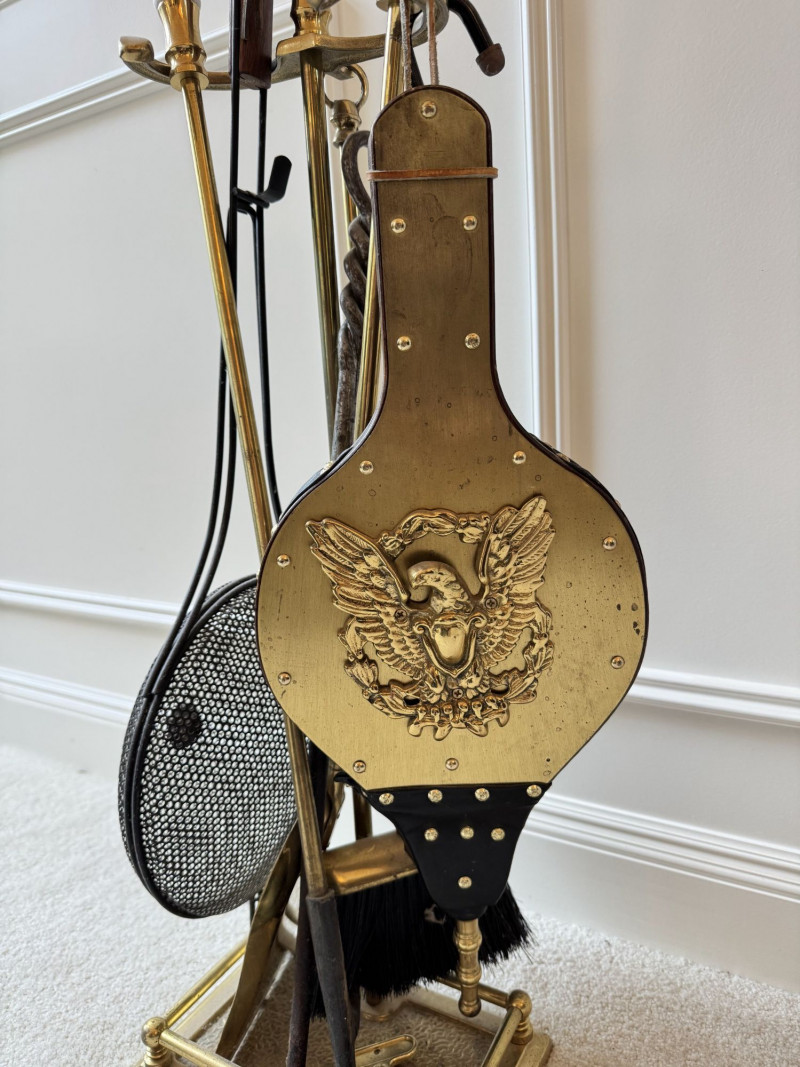 Fireplace Tools - Brush, Shovel, Embossed Eagle Bellows +