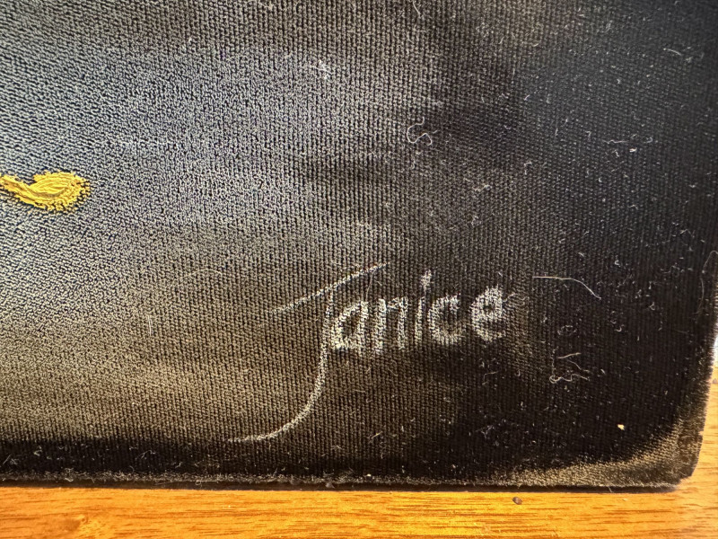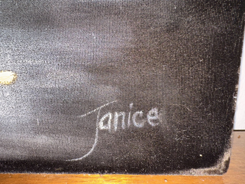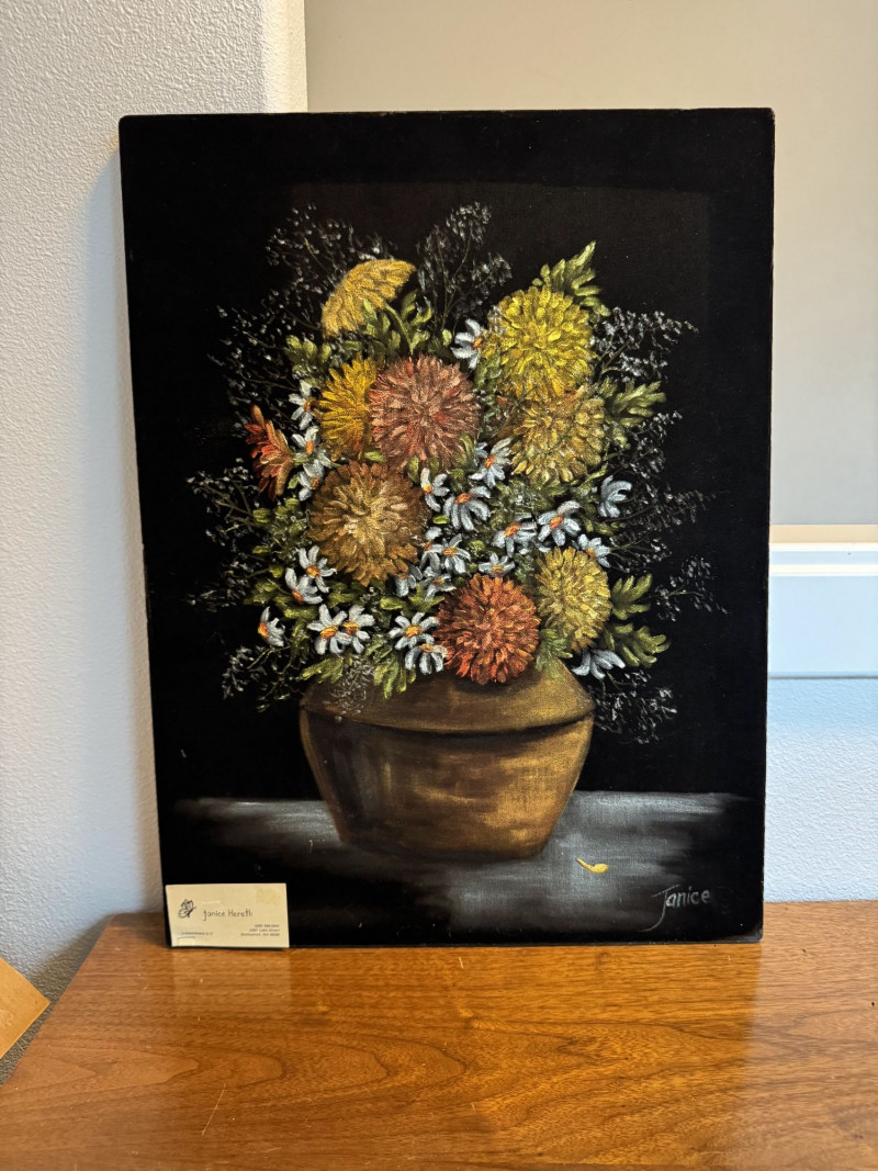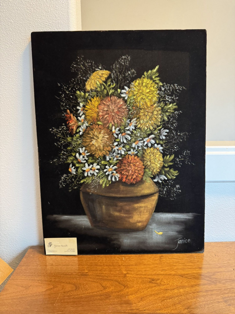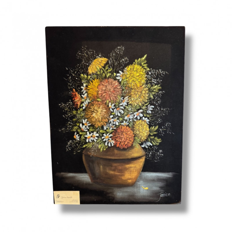 Original Floral Painting on Black Velvet by Janice Hereth - Signed.