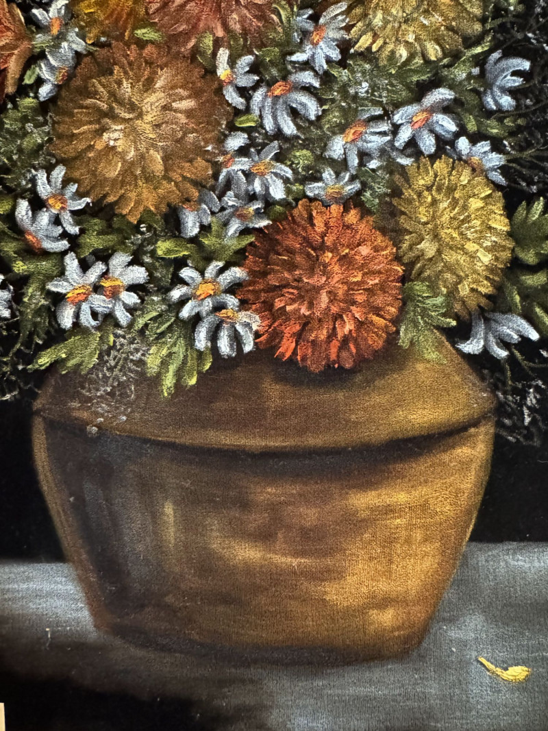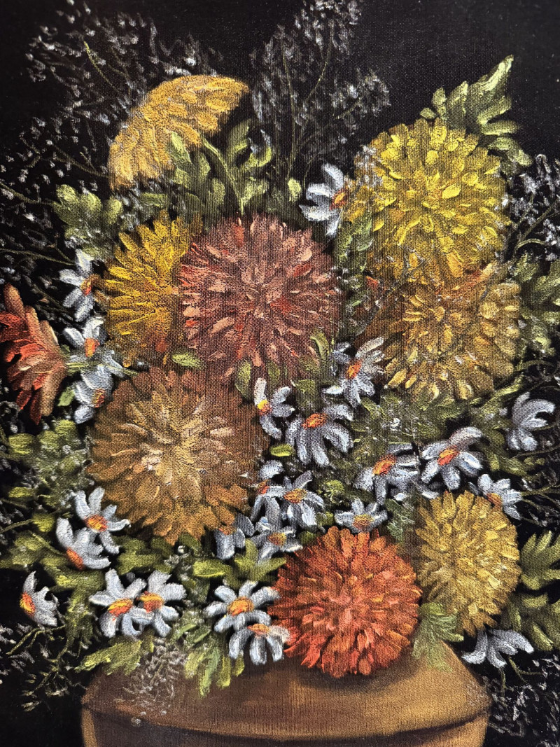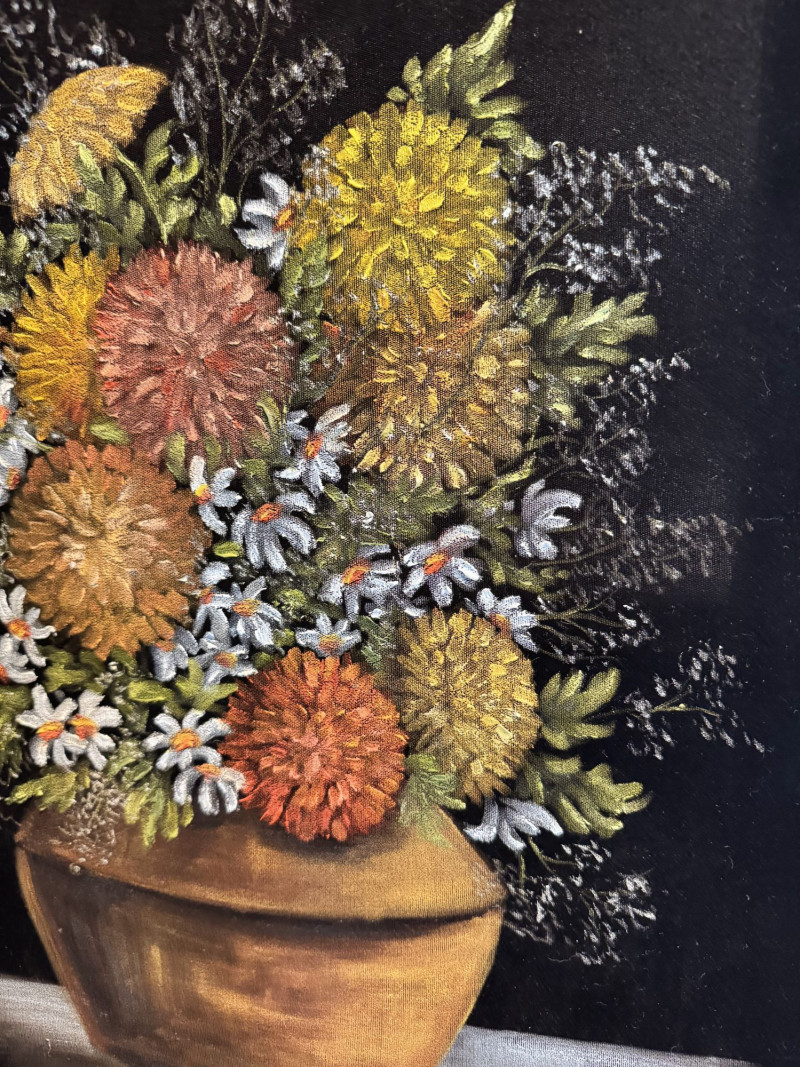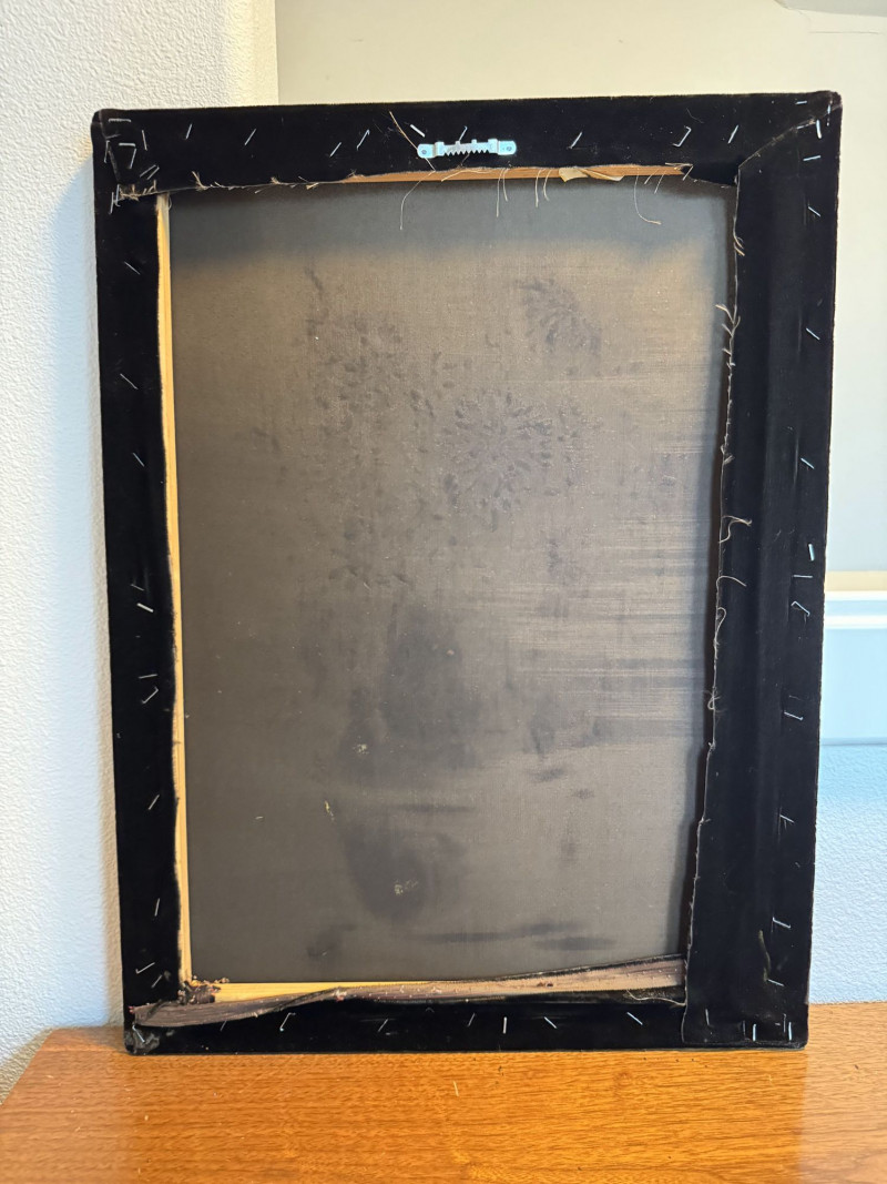 Original Floral Painting on Black Velvet by Janice Hereth - Signed.